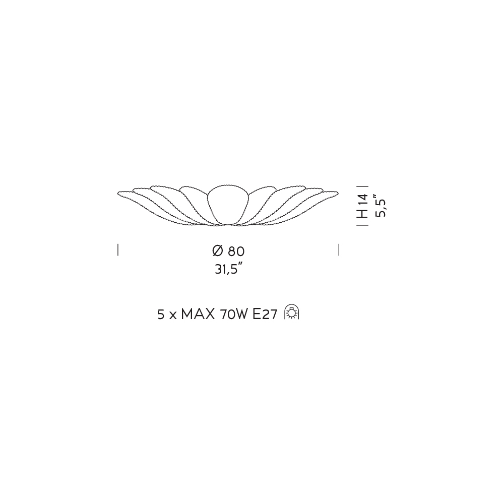- Durchmesser 80 x H 14 cm (5 Lichter);