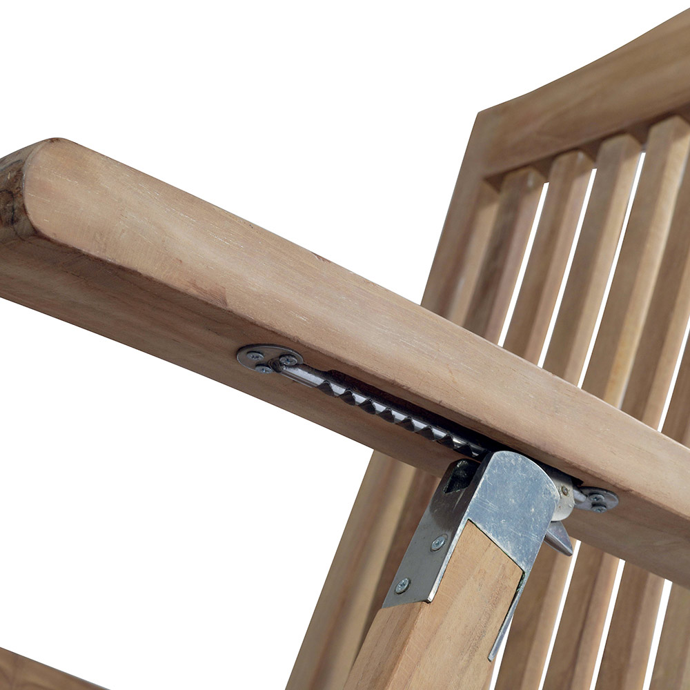 Der Sessel ist verstellbar , sodass Sie die perfekte Position für maximalen Komfort finden können, egal ob Sie lesen, sonnenbaden oder ein Nickerchen machen möchten. Die ergonomischen Latten bieten optimale Unterstützung, während die massive Teakholzstruktur Stabilität und Robustheit gewährleistet.