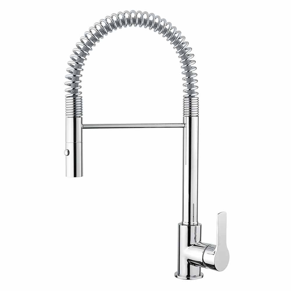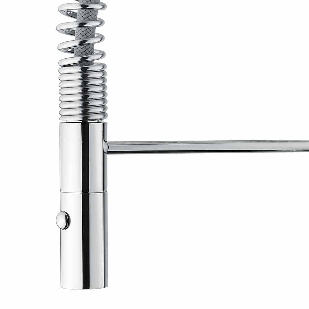 Made in Italy Küchenspüle Mischer aus verchromtem Messing. Dank des verstellbaren Auslaufs mit Feder und der 2-Jet-Dusche vereinen sich Funktionalität und Design , um das perfekte Produkt für eine Küche mit einem modernen und innovativen Aussehen zum Leben zu erwecken, ohne dabei eine äußerst einfache und praktische Verwendung zu vernachlässigen.
