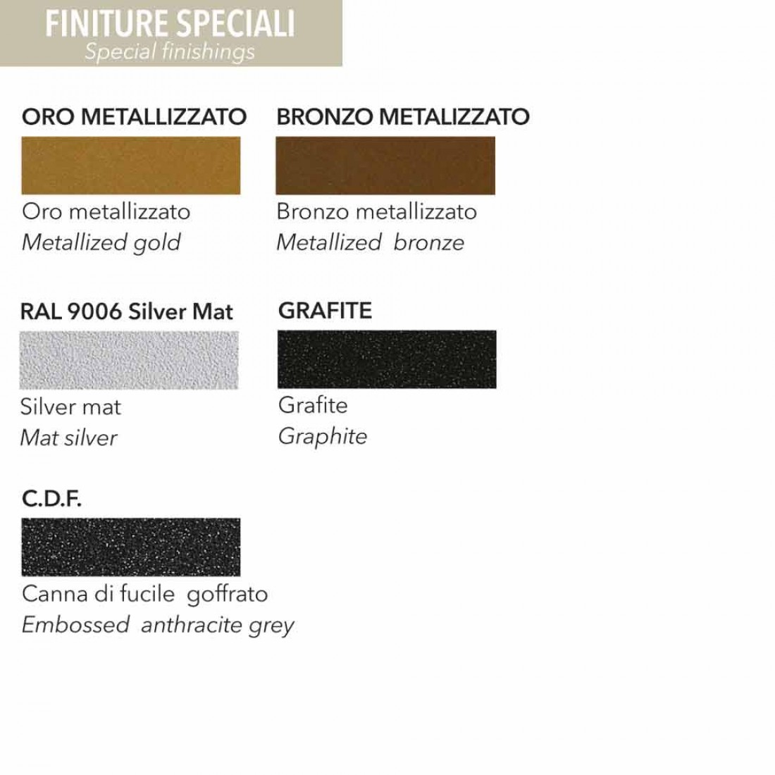 Heizkörper in verschiedenen Farbvarianten erhältlich: Sehen Sie sich die Farbkarte an und geben Sie den gewünschten Farbcode in das entsprechende Feld ein. NB: Geben Sie bei der Bestellung den Rohrtyp (Kupfer oder Mehrschicht) und den Durchmesser an. Falls keine Vorkehrungen getroffen werden, wird die 12-mm-Kupferrohrverbindung mitgeliefert.https://www.viadurini.de//data/prod/img/termoarredo-idraulico-verticale-cover-in-acciaio-scirocco-h-light-6.jpg1460.19InStockHeizkörper HydraulischScirocco H000.02017-08-31 09:13:28Made in Italy