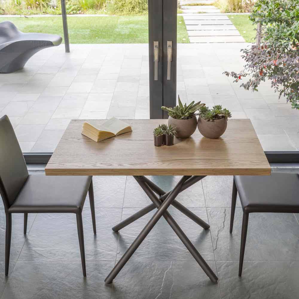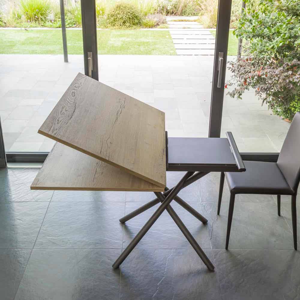 Verwandelbarer Couchtisch aus Metall und Holz, hergestellt in Italien.