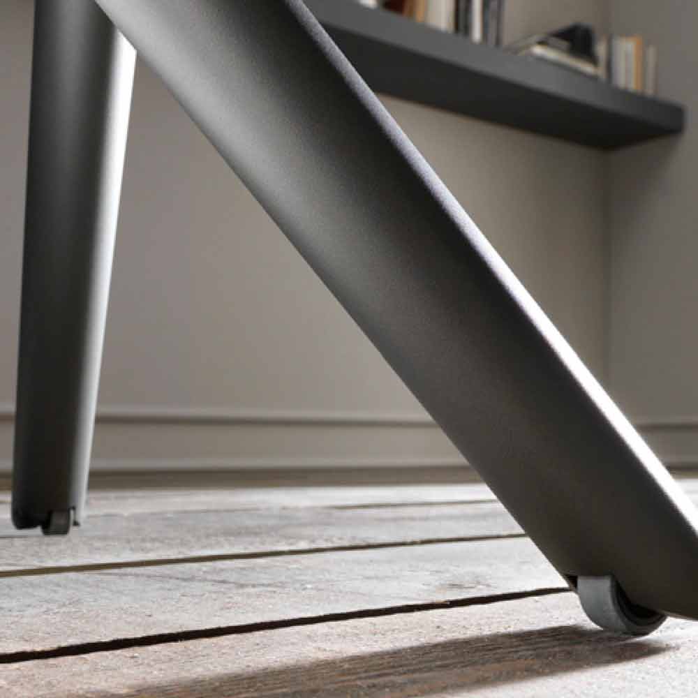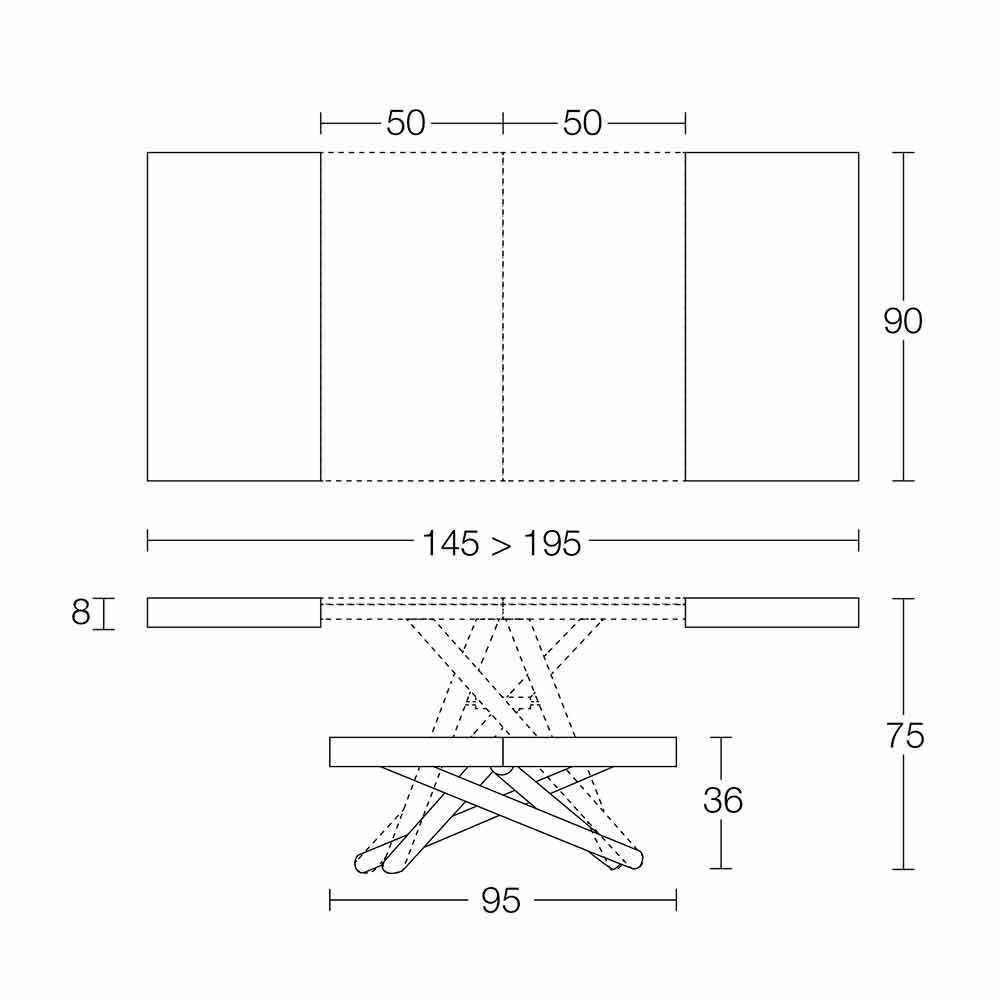 Verwandelbarer Couchtisch in modernem Design mit Melaminplatte und Metallfuß, hergestellt in Italien.