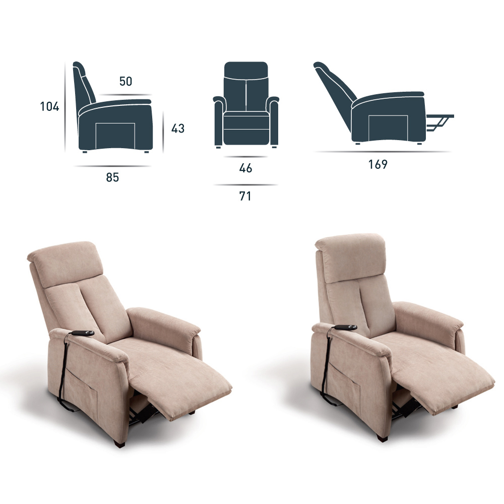 Der Via Venezia Liftsessel verfügt über einen 2-Motoren -Mechanismus mit motorisierter Entspannungsbewegung mithilfe einer Fernbedienung.