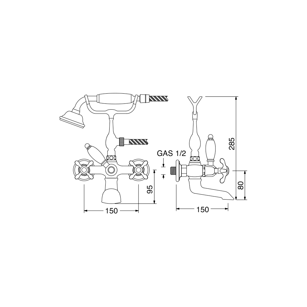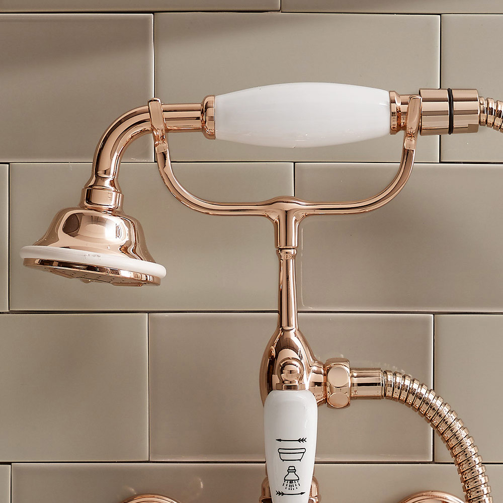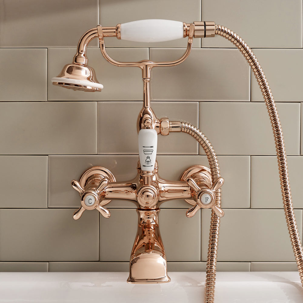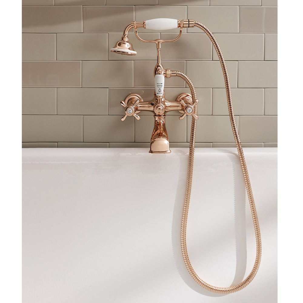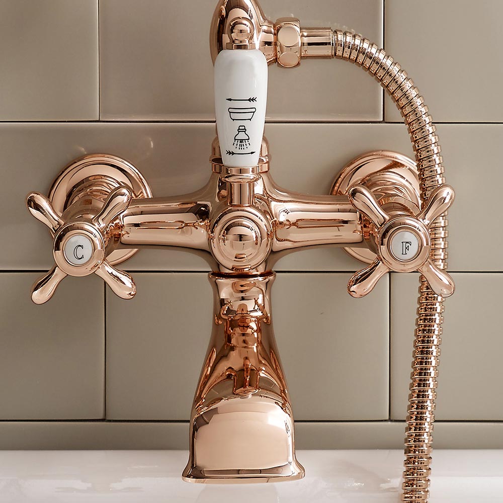 Wannengruppe mit Handbrause aus Klarisa-Messing, made in Italy.