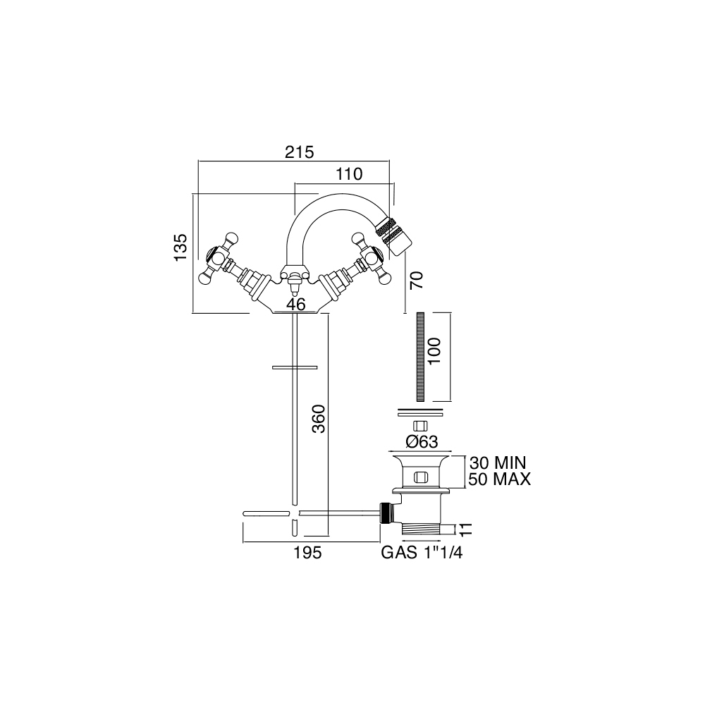 . Elisea è eine Einloch-Bidet-Mischbatterie mit Ablauf, aus Messing.