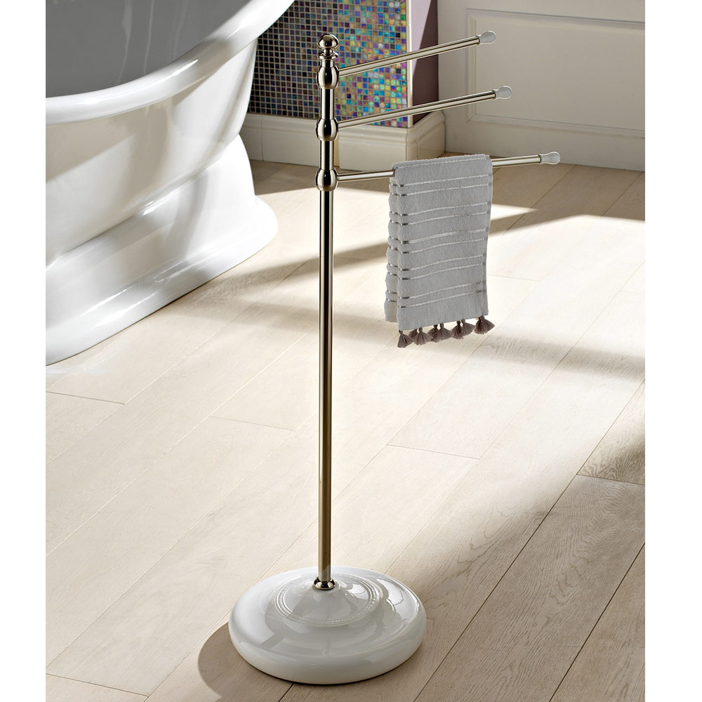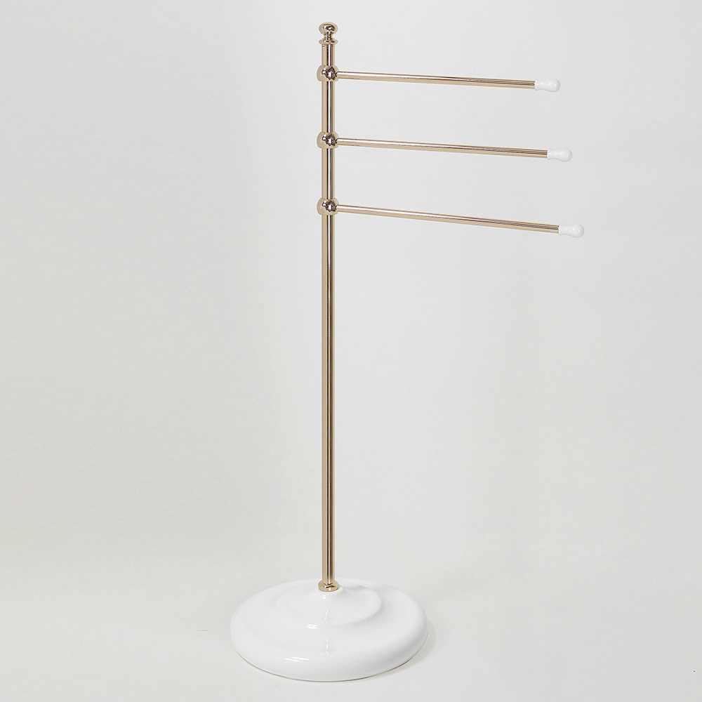 Vintage Bodenhandtuchhalter aus Messing und Keramik hergestellt in Italien, Lyon.
