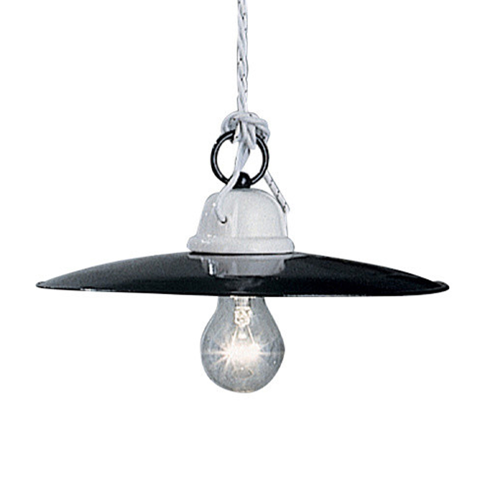 Vintage Hängelampe aus weißer Keramik und schwarzem Metall - Power