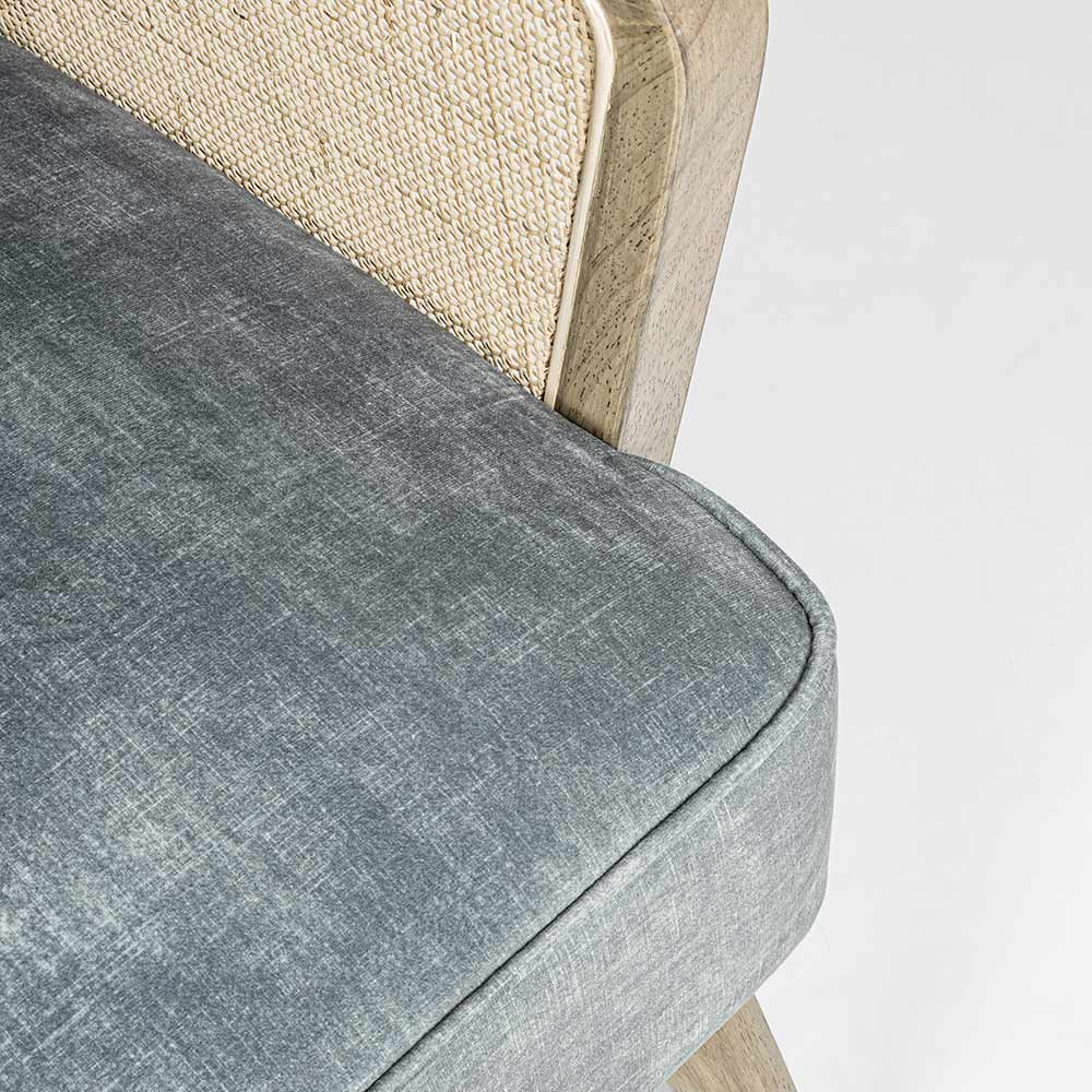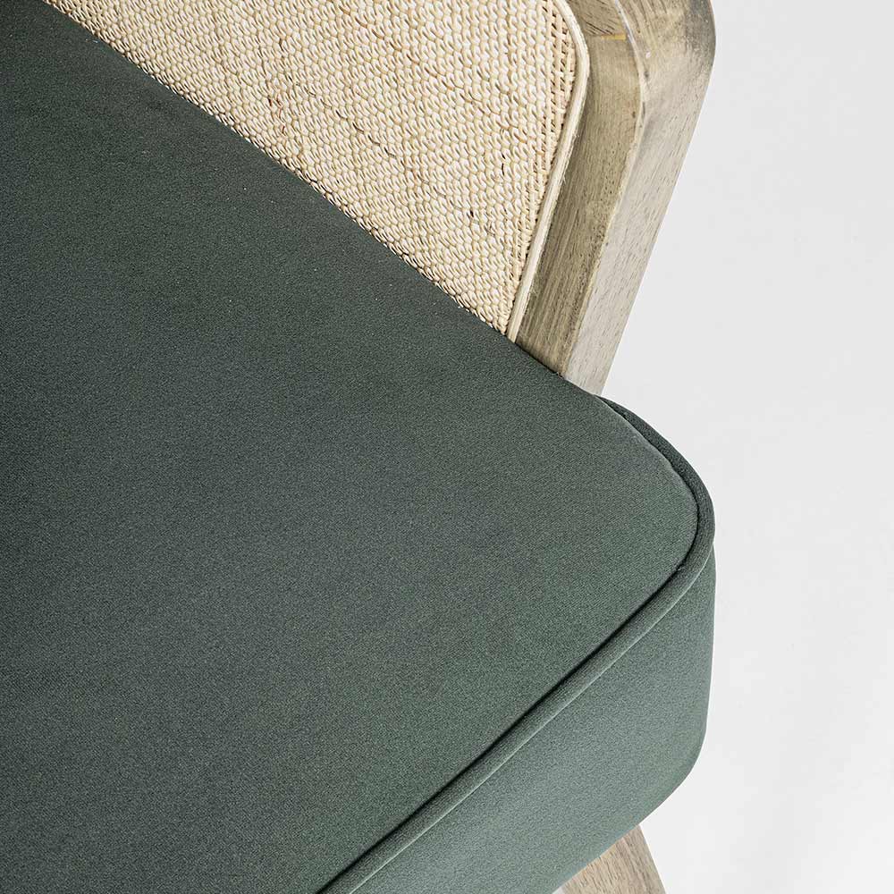 Armlehnen mit Rattan-Einsätzen.