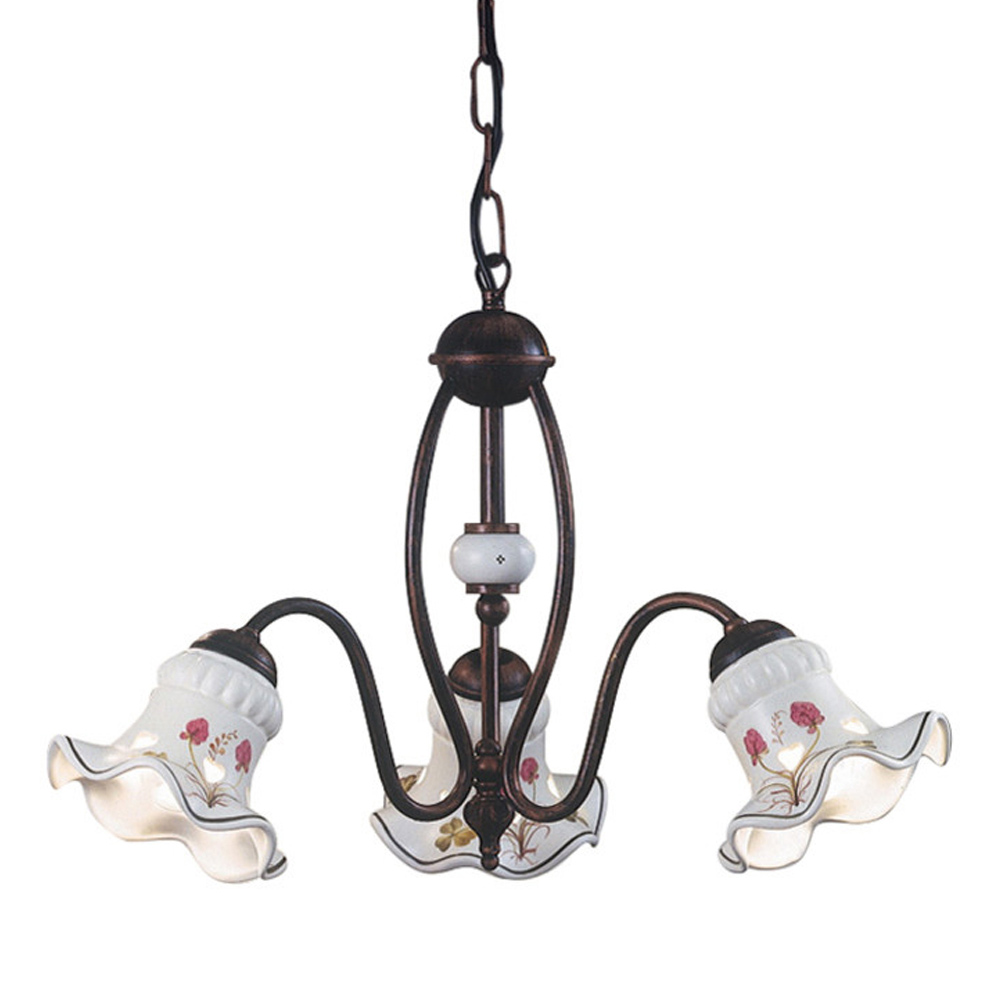 Der 3- oder 5-flammige Kronleuchter besteht vollständig aus Eisen und Keramik mit zarten handgemalten Verzierungen , die die Handwerkskunst und Geschicklichkeit der Handwerker unterstreichen.