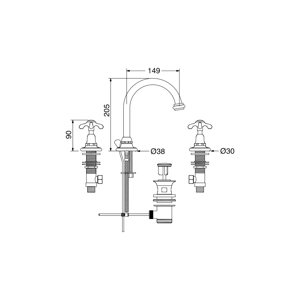 Klarisa è eine feine Batterie 3-Loch Waschbecken mit hohem Auslauf. .