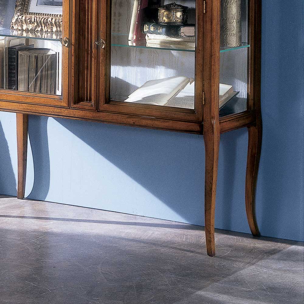 Vitrine mit Rahmen/Teilen aus massivem Toulipier-Holz mit 2 Glastüren mit Glasregal und gepolsterter Juma-Rückenlehne, vollständig in Italien hergestellt.
