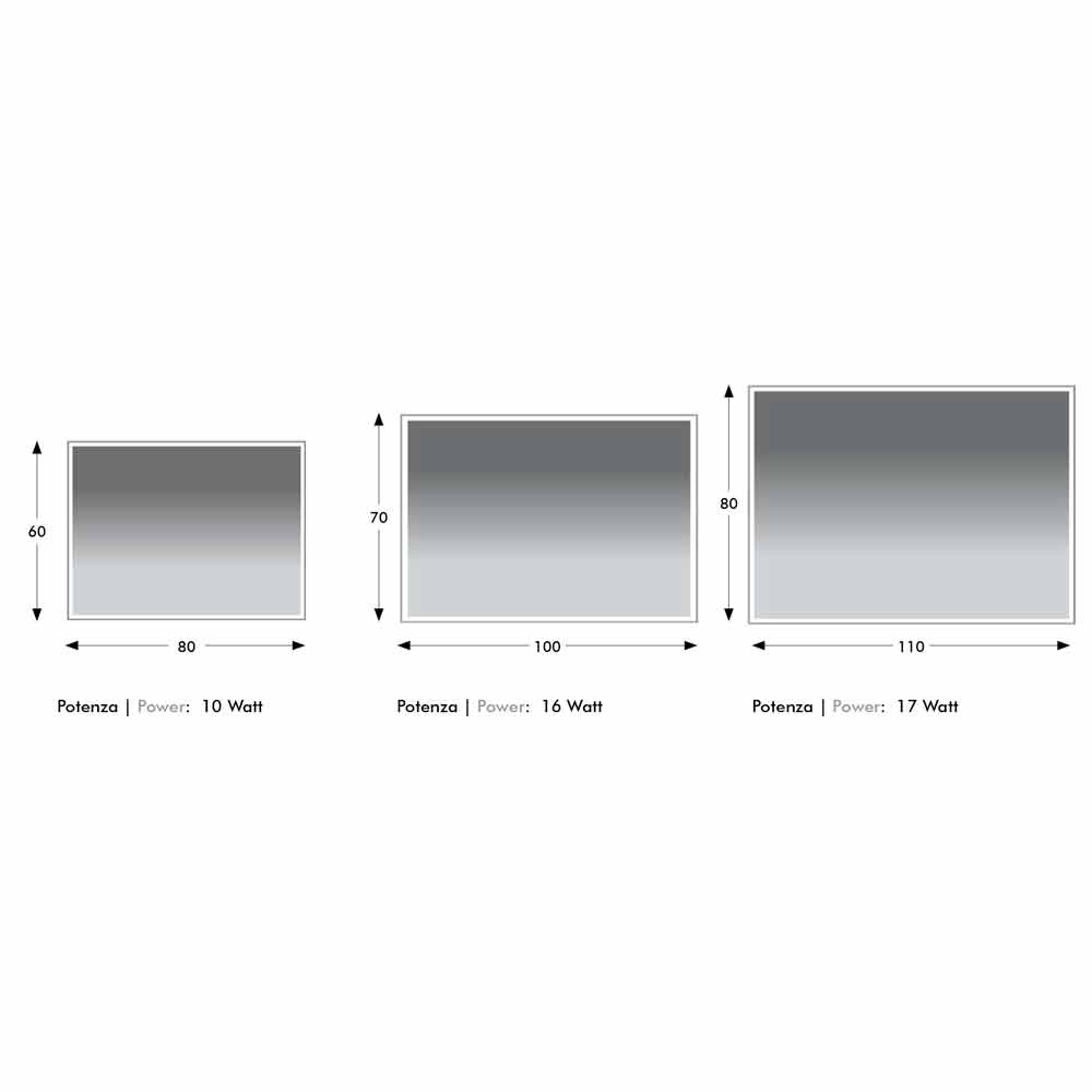 • L 80 x P 3 x H 60 cm (10 W);