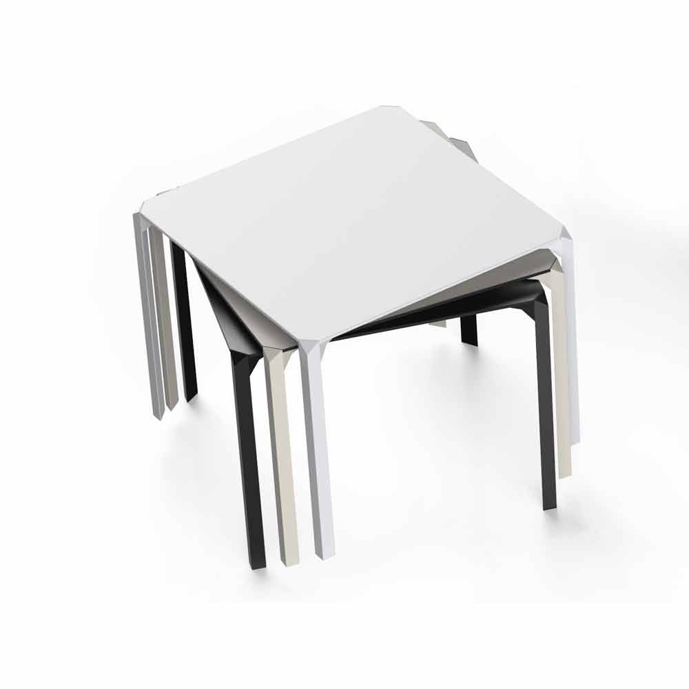 Stapelbarer Outdoor-Tisch Quartz von Vondom aus luftgeformtem und glasfaserverstärktem Polyamid.