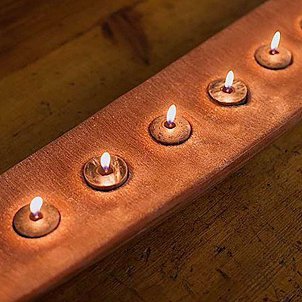 • braunes Boot mit elfenbeinbraunen gemischten Teelichtern.