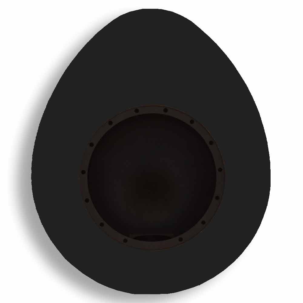 Ovaler Bioethanol-Wandkamin in modernem Design aus Stahl, hergestellt in Italien.