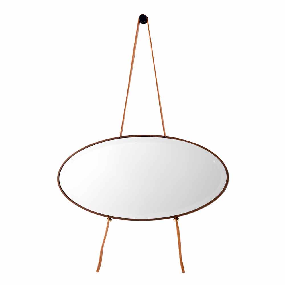 Der York Spiegel hat ein einzigartiges Design und Stil. Er besteht aus einem Gestell aus massivem Holz in Nussbaum Canalal und einem in der Höhe verstellbaren Ledergürtel zur Unterstützung.