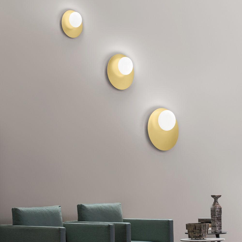Diese Wandleuchte ist ein wahres Beispiel für minimalistisches und elegantes Design , perfekt für alle, die ihre Räume mit klaren Linien und edlen Materialien verschönern möchten. Die runde Metallstruktur umschließt einen kugelförmigen Diffusor aus weißem Glas und erzeugt so einen angenehmen Kontrast zwischen geometrischer Form und weichem Licht .