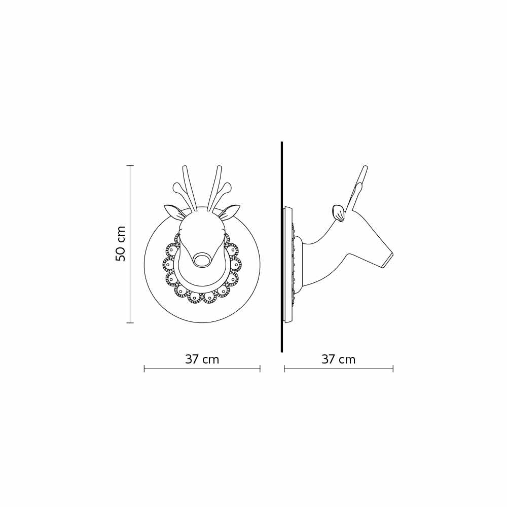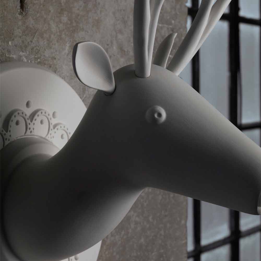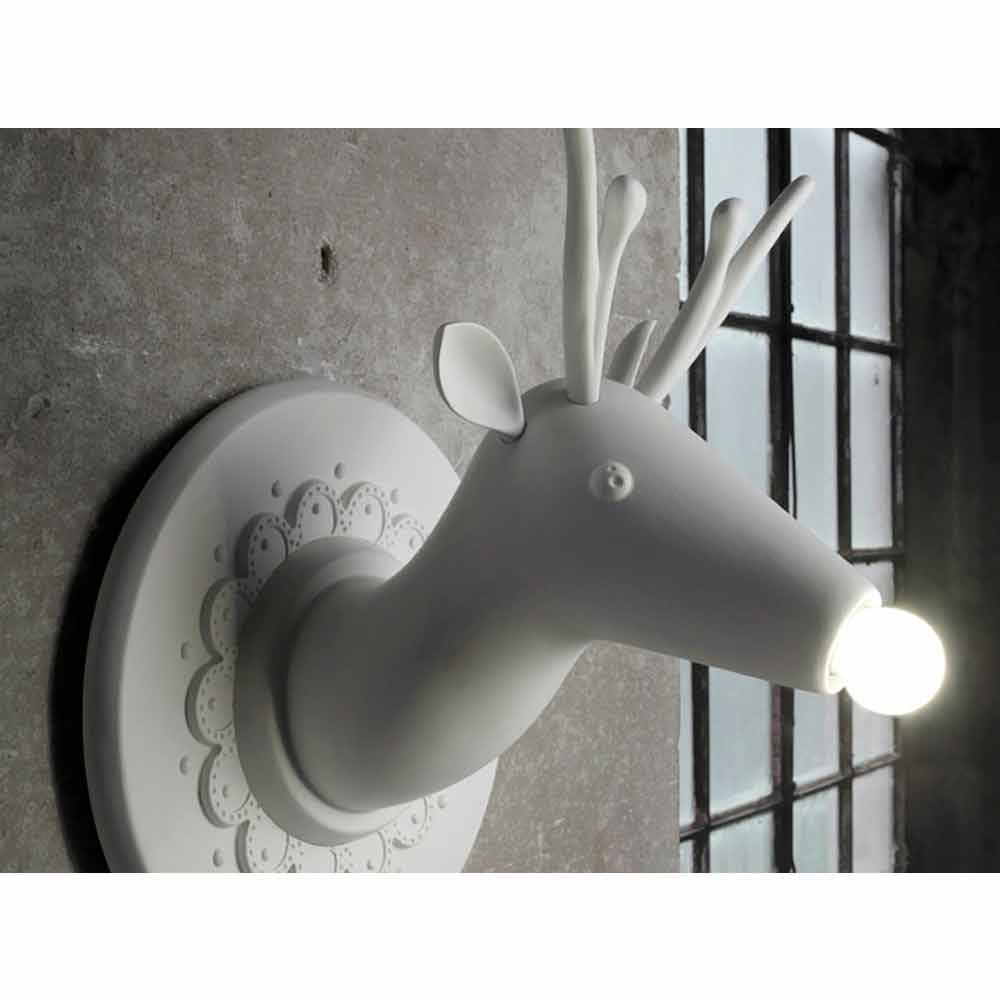 Diese originelle und einzigartige Wandleuchte zeigt ein Reh aus der Welt der Märchen. Anstelle des Mundes finden wir eine Glühbirne, die die Sprache des Lichts symbolisiert, die das Tier sprechen kann, um die Authentizität und die tausend Schattierungen zu betonen charakterisieren die Persönlichkeit jedes Einzelnen durch die Darstellung von Leuchtelementen mit einem einzigartigen und innovativen Design