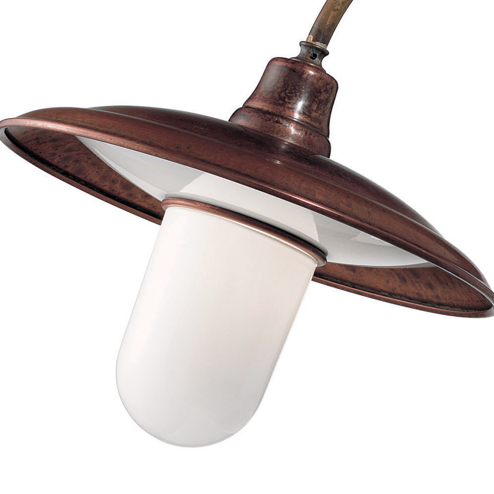 Außenwandleuchte mit Rahmen aus antikem Messing, Kopf aus antikem Kupfer und transparentem GlasKomplett in Italien hergestellt. Bei den Leuchten der Chiocciola-Kollektion aus Eisen, Messing oder antikem Kupfer steht die Funktionalität im Vordergrund. Sie sind von schlechter Kunst inspiriert und haben klare Formen, frei von jeglicher Künstlichkeit. Die Kollektion besteht aus Pendelleuchten, Wandleuchten, Deckenleuchten und Gartenleuchten.