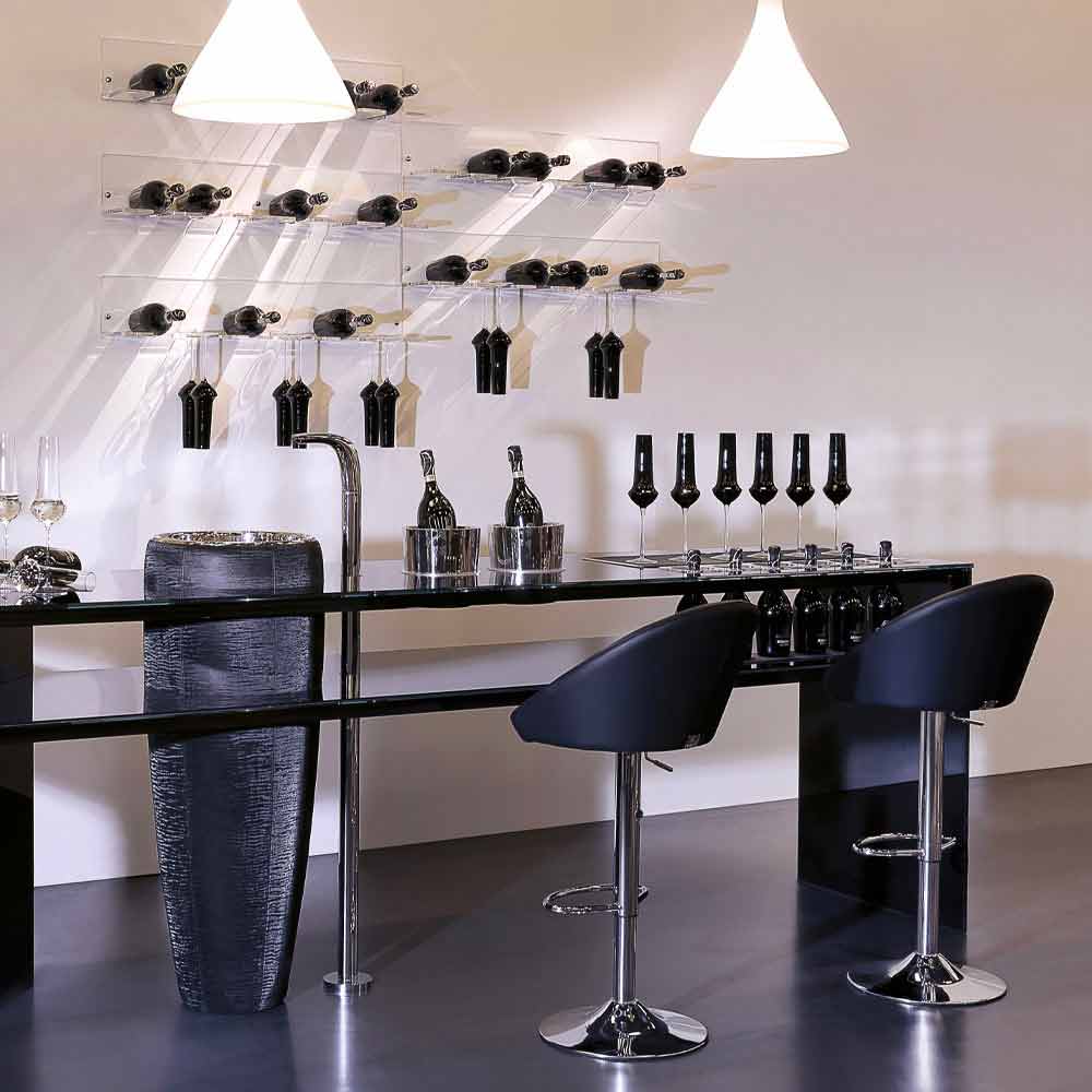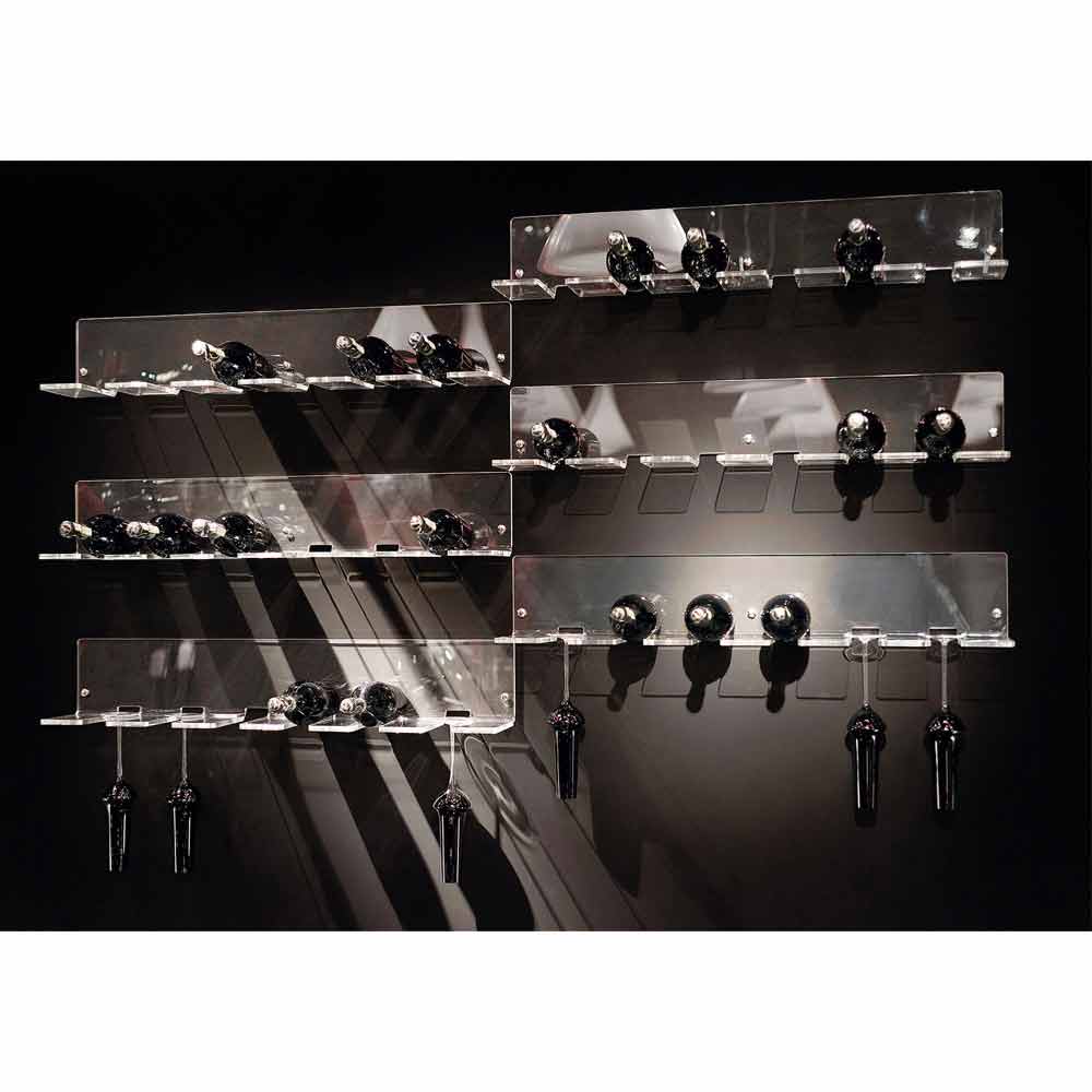 Wandmontierter Flaschenhalter für 6 Flaschen aus transparentem Plexiglas Made in Italy.