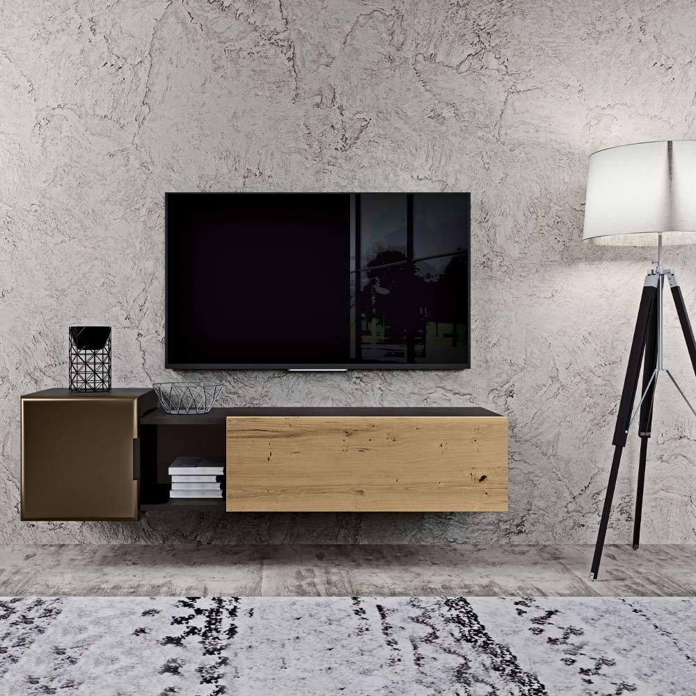 - Nordische Wohnwand aus geknoteter Eiche + Anthrazit: Länge 120 cm x Tiefe 42 cm x Höhe 40 cm
