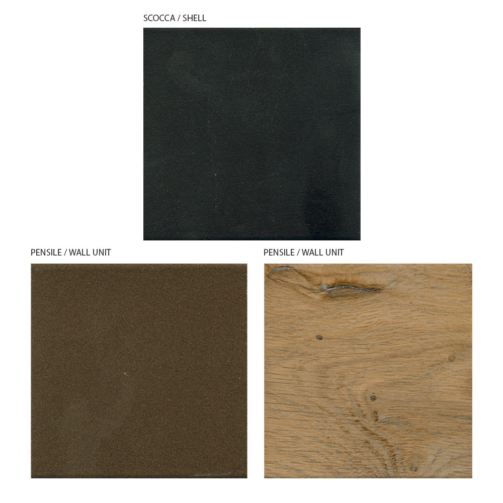 - Hängeschrank mit Klappen aus Eiche, Ausführung NORDIC KNOTTED OAK + CHARCOAL, MDF-Schale, Türen aus geknoteter Eichenholzplatte