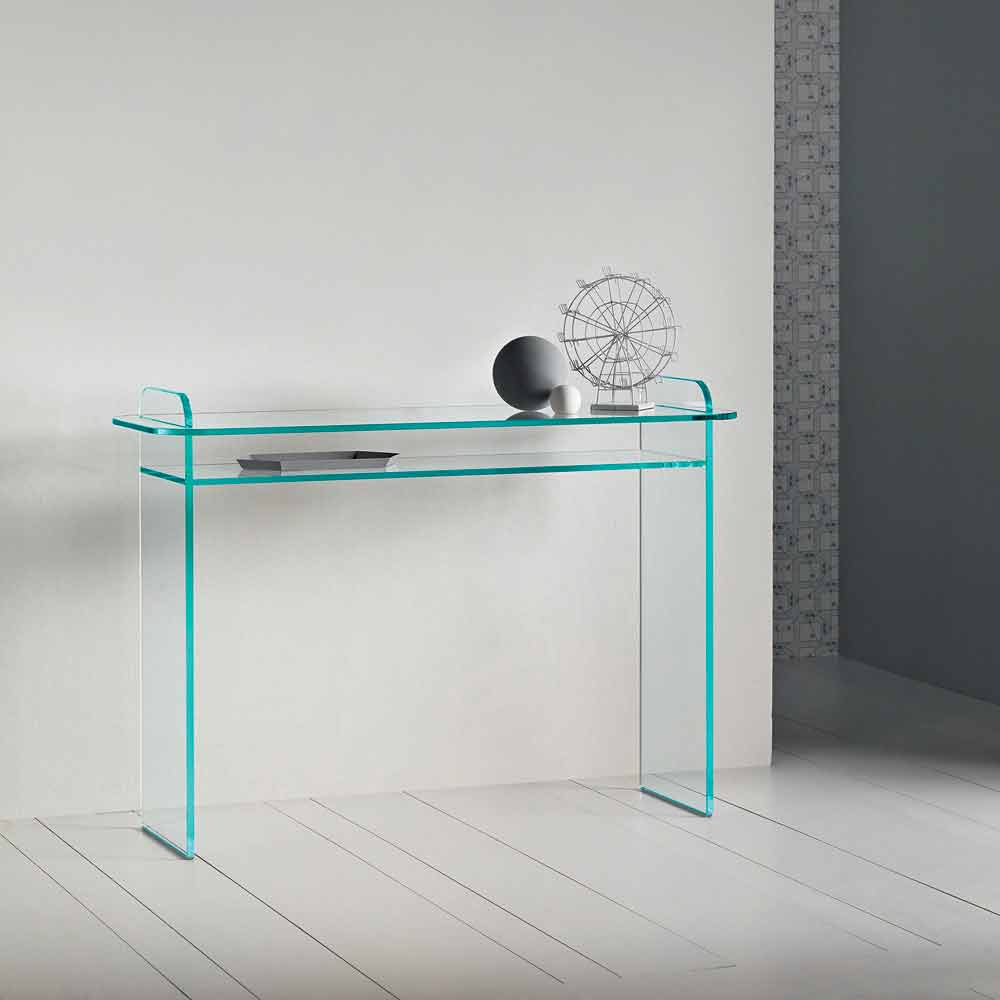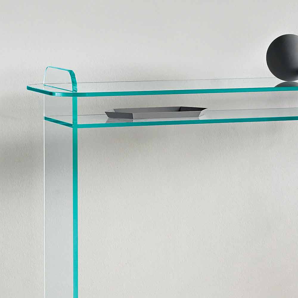 Komplett aus 12 mm dickem extraklarem Glas gefertigt , ist es dank seiner praktischen und minimalen Formen ideal, um der Umgebung Stil und Funktionalität zu verleihen.