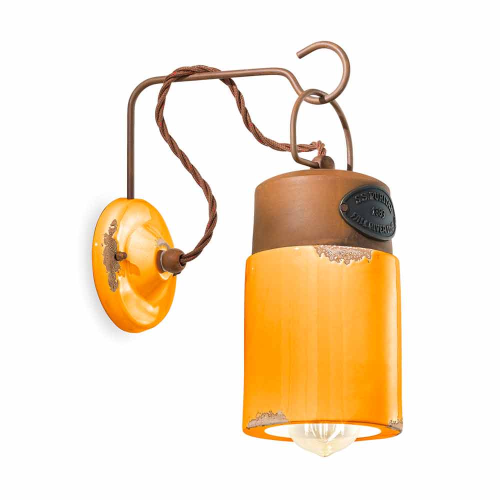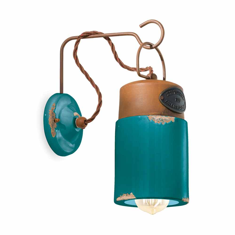 Wandlampe aus Keramik und Rosteisen Desiree von Ferroluce Desiree ist eine fantastische Wandleuchte im Vintage- und Industriestil, die von erfahrenen Handwerkern in Italien handgefertigt wird. Diese schöne Wandleuchte besteht aus einer Eisenstruktur in Rostoptik mit einem Diffusor aus glänzender Keramik, der in verschiedenen Farben erhältlich ist. Die Metallstruktur verleiht Desiree dank ihres Rostfinishs einen gealterten und antiken Effekt. Das Eisen wird durch ein spezielles handwerkliches Verfahren so behandelt, dass es auf natürliche Weise oxidiert. Am Ende des gesamten Prozesses hat das Bügeleisen eine glänzende und glatte Oberfläche. Eine weitere Besonderheit dieser Leuchte liegt in der handwerklichen Verarbeitung des Keramikdiffusors. Die Keramik ist in der Tat so dekoriert, als ob die Zeit ihren Weg gezeichnet hätte. Die Reproduktion der Erosion der Zeit in Kombination mit den glänzenden Oberflächen verleihen dieser Applikation diesen zusätzlichen Wert. Dieser abgenutzte Effekt verleiht Desiree einen raffinierten Vintage-Industrial-Stil. Ideal für die Dekoration eines Landhauses im englischen Stil. Diese Wandleuchte, die für Umgebungen mit einer einhüllenden Atmosphäre geschaffen wurde, kann dank eines einzigartigen und originellen Designs die anspruchsvollsten Anforderungen erfüllen. Ein Design, das sich dem Luxus widersetzt, aber harmonisch mit ihm koexistiert. Design, das die Wesentlichkeit des Gebrauchs bewahrt und mit einer feinen Balance zwischen Formen und Tönen beruhigt. Desiree erweckt reines, ungeschirmtes Licht zum Leben. Es sind diese einfachen und zarten Formen, die Aufmerksamkeit erregen und die Desiree in die Lage versetzen, sich an jedes Dekor anzupassen, vom einfachsten und minimalistischsten bis zum klassischsten, wodurch ein zarter Kontrast entsteht. Bringen auch Sie einen Hauch von Design in Ihr Zuhause! Kleine Details für große Wirkung mit antikem Flair! Lampe in verschiedenen Ausführungen erhältlich. Überprüfen Sie die Farbkarte und geben Sie den Code der gewünschten Ausführung in das entsprechende Feld ein!