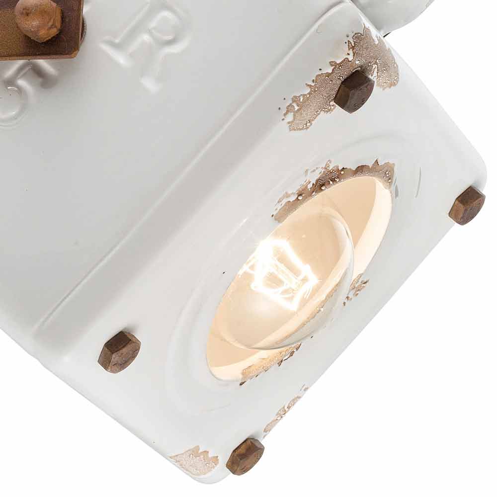 Wandleuchte im Vintage-Industriestil aus Keramik und Eisen Julia Julia ist eine fantastische Wandleuchte mit kubischer Form und Vintage-Industriestil, handgefertigt von erfahrenen Handwerkern in Italien. Diese schöne Wandleuchte besteht aus einer Eisenstruktur in Rostoptik mit einem Diffusor aus glänzender Keramik, der in verschiedenen Farben erhältlich ist. Die Metallstruktur verleiht Julia dank ihres Rostfinishs einen gealterten und antiken Effekt. Das Eisen wird durch ein spezielles handwerkliches Verfahren so behandelt, dass es auf natürliche Weise oxidiert. Am Ende des gesamten Prozesses hat das Bügeleisen eine glänzende und glatte Oberfläche. Eine weitere Besonderheit dieser Leuchte liegt in der handwerklichen Verarbeitung des Keramikdiffusors. Die Keramik ist in der Tat so dekoriert, als ob die Zeit ihren Weg gezeichnet hätte. Die Reproduktion der Erosion der Zeit in Kombination mit den glänzenden Oberflächen verleihen dieser Applikation diesen zusätzlichen Wert. Dieser abgenutzte Effekt verleiht Julia einen raffinierten Vintage-Industrial-Stil. Leuchtende Farben, glänzende Oberflächen und raffinierte Alterungsspuren für ein aktuelles Profil im Gewand eines vergangenen Stils. Die Schrauben in Corten-Finish sind das Detail, das diese Wandleuchte vervollständigt und ihr den industriellen Geschmack verleiht. Ideal für die Dekoration eines Landhauses im englischen Stil. Diese Wandleuchte, die für Umgebungen mit einer einhüllenden Atmosphäre geschaffen wurde, kann dank eines einzigartigen und originellen Designs die anspruchsvollsten Anforderungen erfüllen. Ein Design, das sich dem Luxus widersetzt, aber harmonisch mit ihm koexistiert. Design, das die Wesentlichkeit des Gebrauchs bewahrt und mit einer feinen Balance zwischen Formen und Tönen beruhigt. Julia erweckt ein reines Licht ohne Abschirmung zum Leben. Es sind diese einfachen und zarten Formen, die Aufmerksamkeit erregen und die Julia in die Lage versetzen, sich an jedes Dekor anzupassen, von den einfachsten und minimalsten bis zu den klassischsten, wodurch ein zarter Kontrast entsteht. Bringen auch Sie einen Hauch von Design in Ihr Zuhause! Kleine Details für große Wirkung mit antikem Flair! Lampe in verschiedenen Ausführungen erhältlich. Überprüfen Sie die Farbkarte und geben Sie den Code der gewünschten Ausführung in das entsprechende Feld ein!