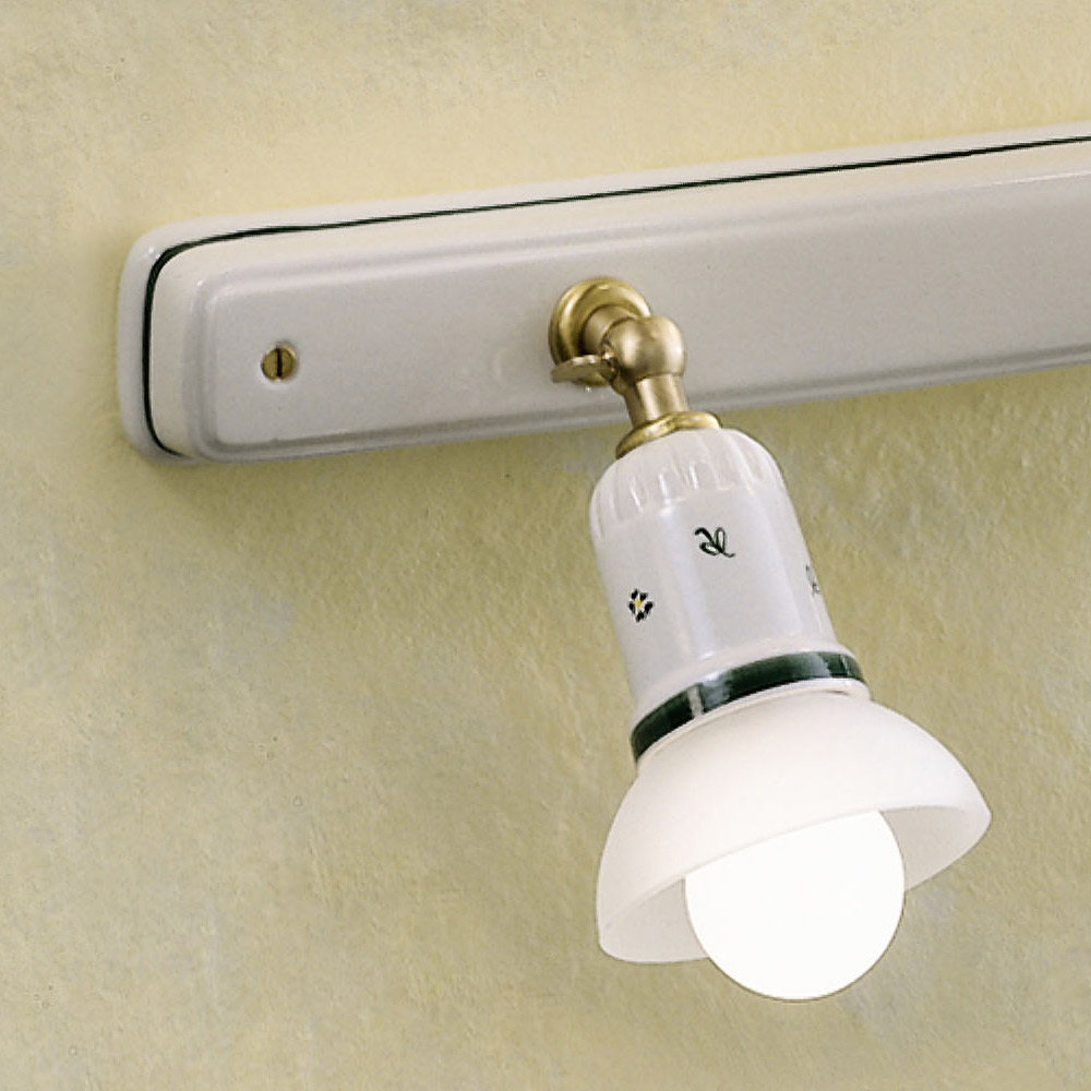 Diese Applikation mit 2 oder 3 Strahlern mit linearem Design ist vollständig hergestelltin Messing und Keramik mit handgemaltem Blumendekor,um das Geschick und die handwerklichen Fähigkeiten der Handwerker hervorzuheben. Das Design zeichnet sich durch die Funktionalität der ursprünglichen Lichtpunkte mit einem edlen Design aus, wobei das für die Metallteile gewählte Messing wärmt und einen Hauch von Eleganz verleiht.
