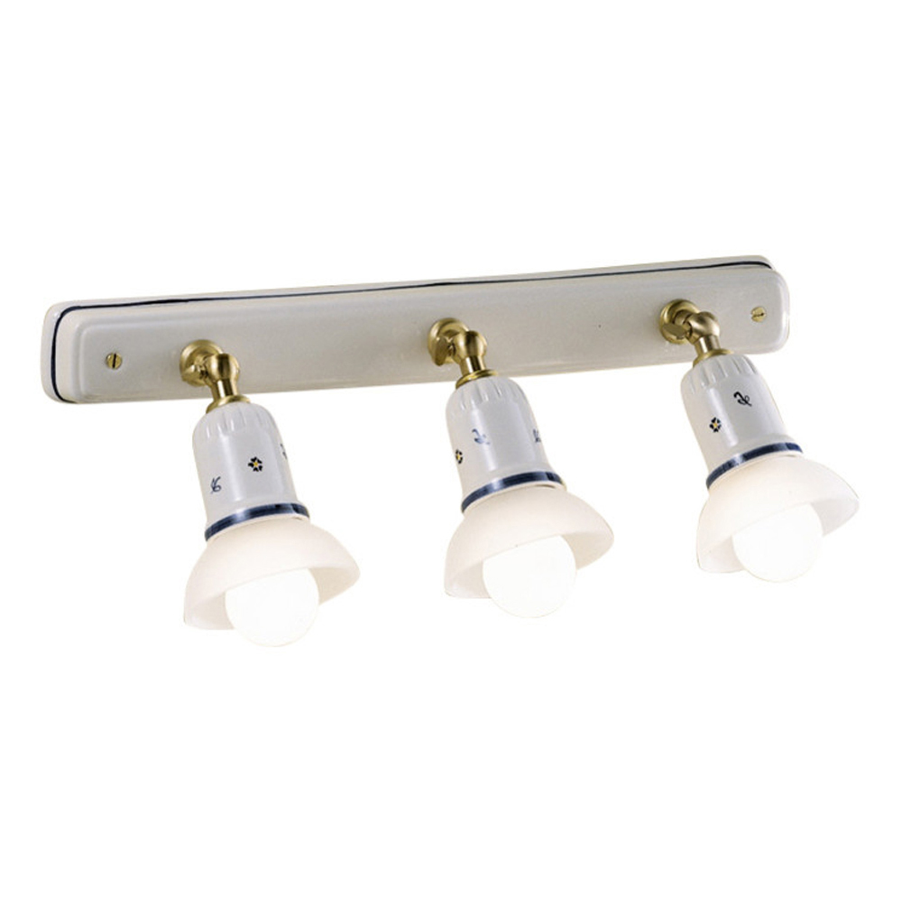 Lineare Wandleuchte mit 2 oder 3 Leuchten aus Messing und handbemalter Keramik, hergestellt in Italien von Ferroluce.