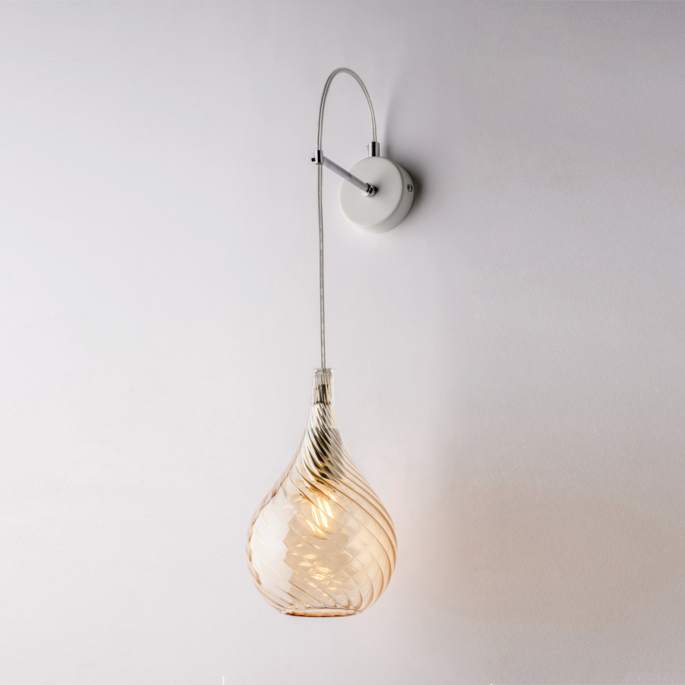 Diese Wandleuchte ist in den Ausführungen Transparent , Bernstein oder Grau erhältlich und passt sich verschiedenen Einrichtungsstilen an: hell und dezent in der transparenten Variante, warm und behaglich in Bernstein und modern und elegant in Grau. Sie eignet sich ideal für Flure, Schlafzimmer, Wohnbereiche, Eingangsbereiche und exklusive Objekträume – sowohl als Einzelleuchte als auch in Kombination mit anderen Leuchten.