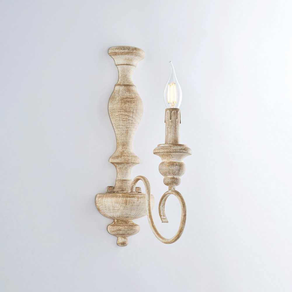 Elegant und harmonisch interpretiert diese handgefertigte Wandleuchte aus Holz und Eisen den Shabby-Chic- Stil auf stilvolle Weise und vereint klassische Formen mit feinen Oberflächen. Die schlanke Struktur, betont durch geschwungene Arme und kerzenartige Leuchten , verleiht Wänden eine leichte und zeitlose Eleganz – ideal für eine warme und einladende Atmosphäre.