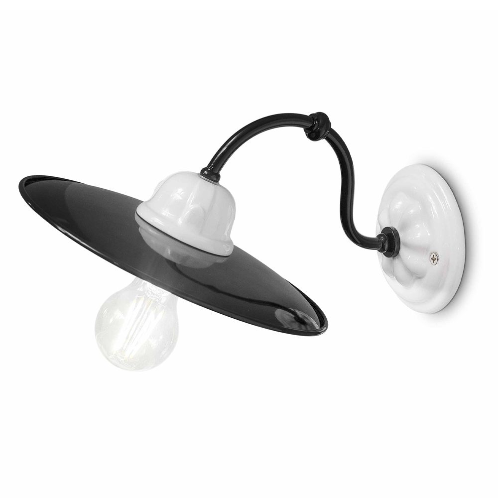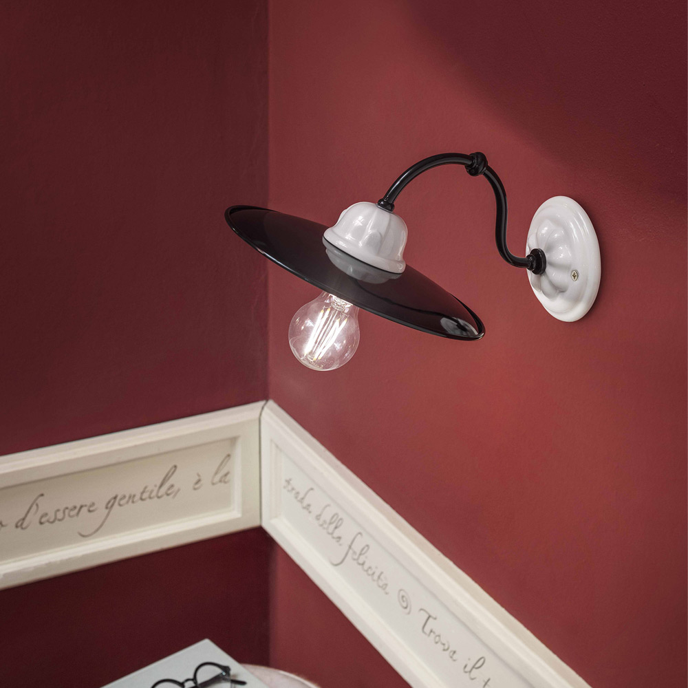 Wandleuchte aus weißer Keramik und schwarzem Metall im Vintage-Stil - Power