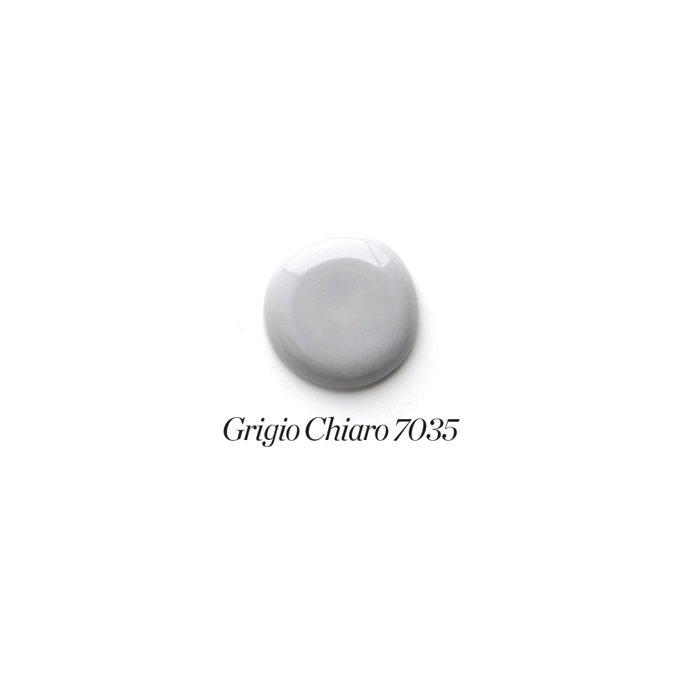 Der obere Teil besteht aus weißer Keramik, der untere Teil aus hellgrauem RAL 7035.