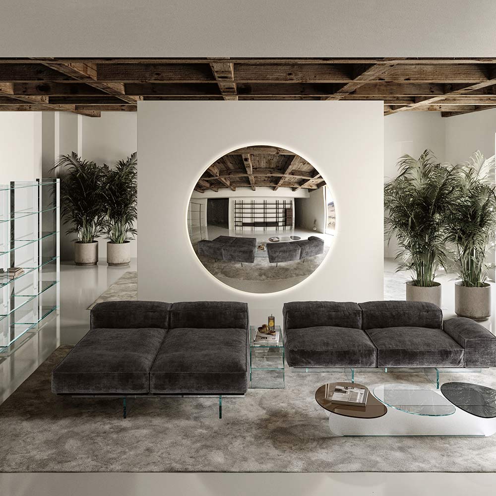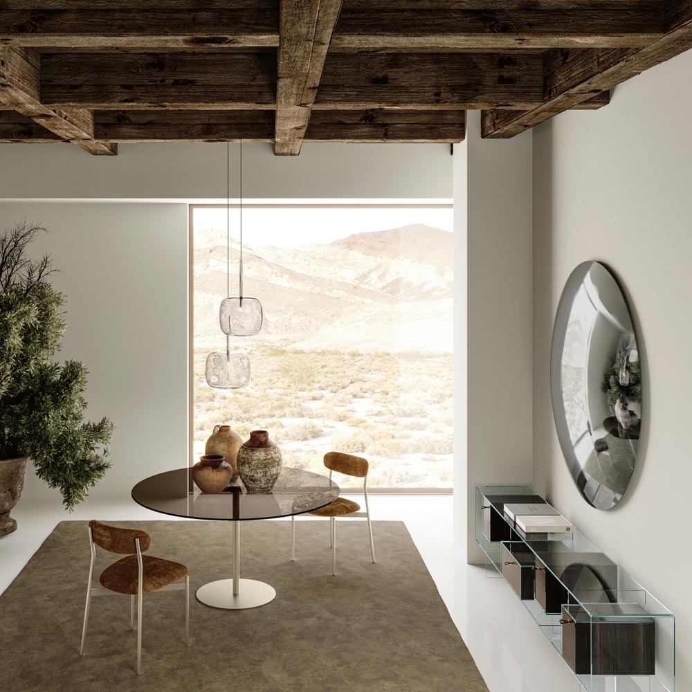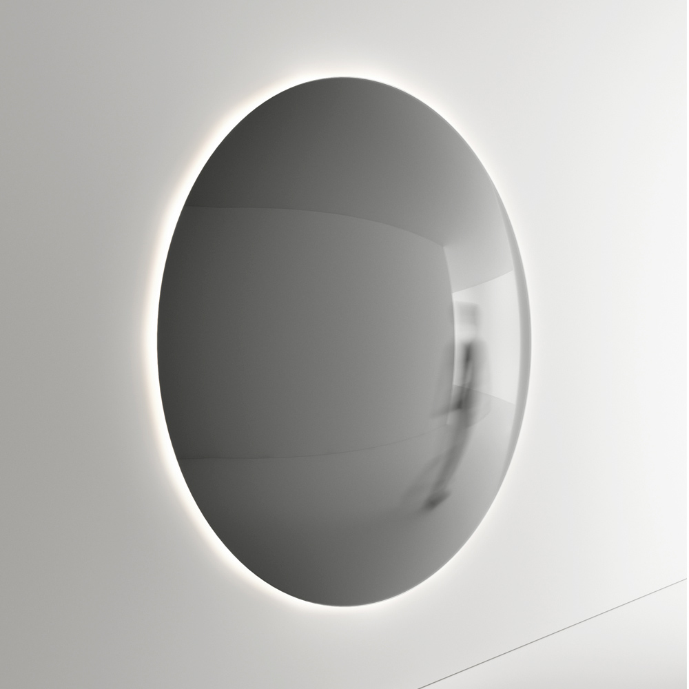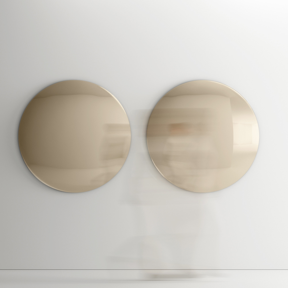 Dieser runde Spiegel ist ein Sinnbild für Schlichtheit und Minimalismus , ein Einrichtungsgegenstand, der sich perfekt in jede moderne oder traditionelle Umgebung einfügt. Seine reflektierende, makellose Oberfläche verstärkt nicht nur Licht und Raum, sondern dient auch als eleganter Blickfang in jedem Raum.