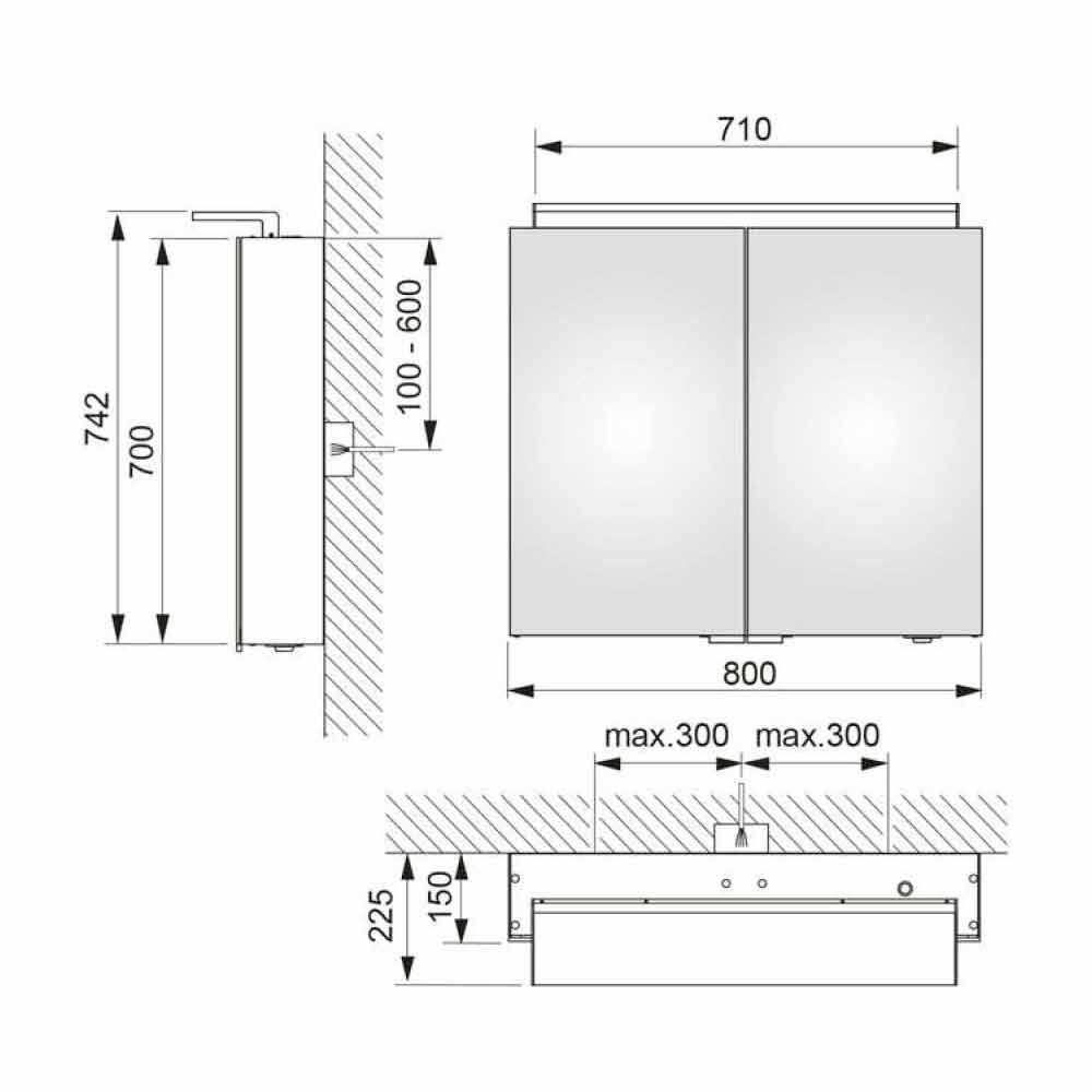 Die komplette Frontbeleuchtung deckt die gesamte Breite des Spiegels ab und sorgt gleichzeitig für eine Aufwärtsbeleuchtung, die für eine optimale tägliche Pflege konzipiert und untersucht wurde. Das indirekte hingegen unterstreicht die Schönheit der Wasserhähne und ist auch sehr nützlich als Orientierungslicht während der Nacht oder um eine entspannendere und intimere Atmosphäre zu schaffen. Es ist auch möglich, eine homogene Beleuchtung im gesamten Raum zu erzeugen, indem zwei Modi gleichzeitig aktiviert werden.