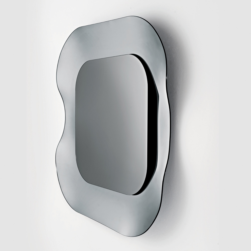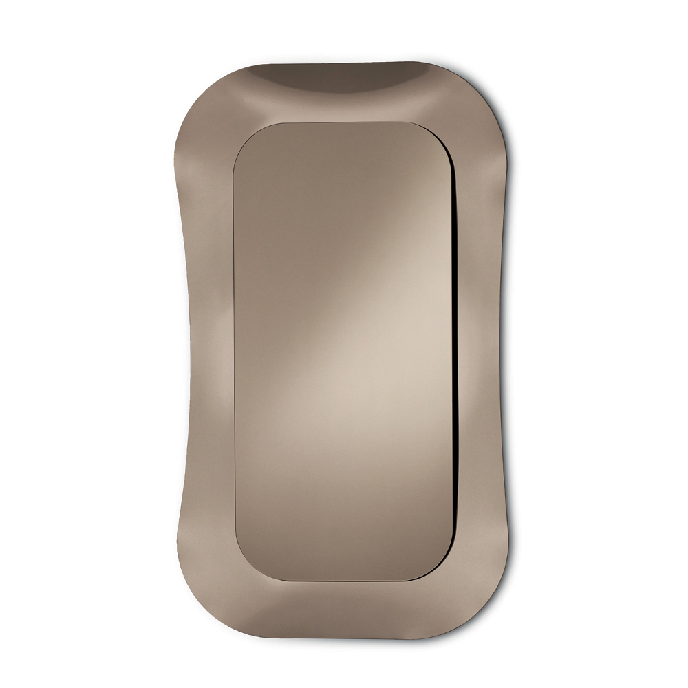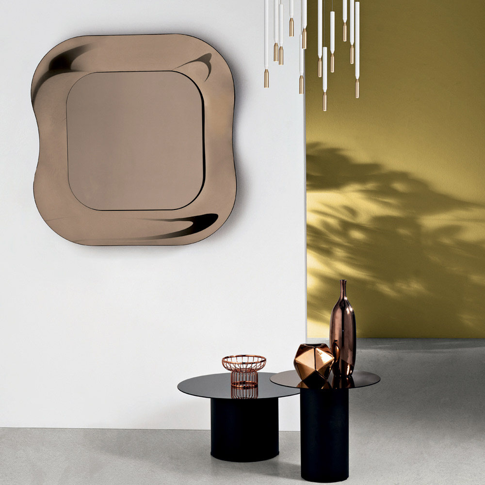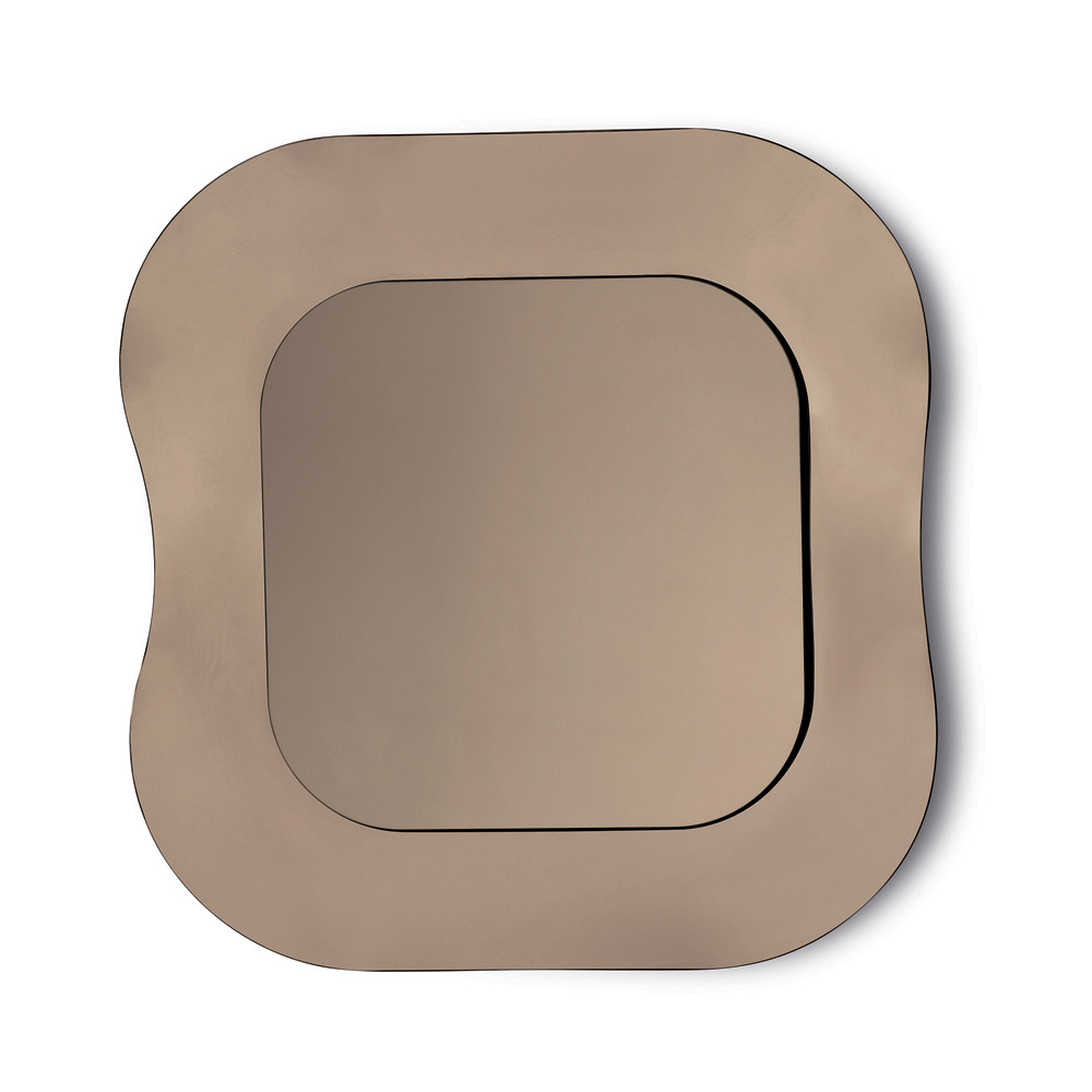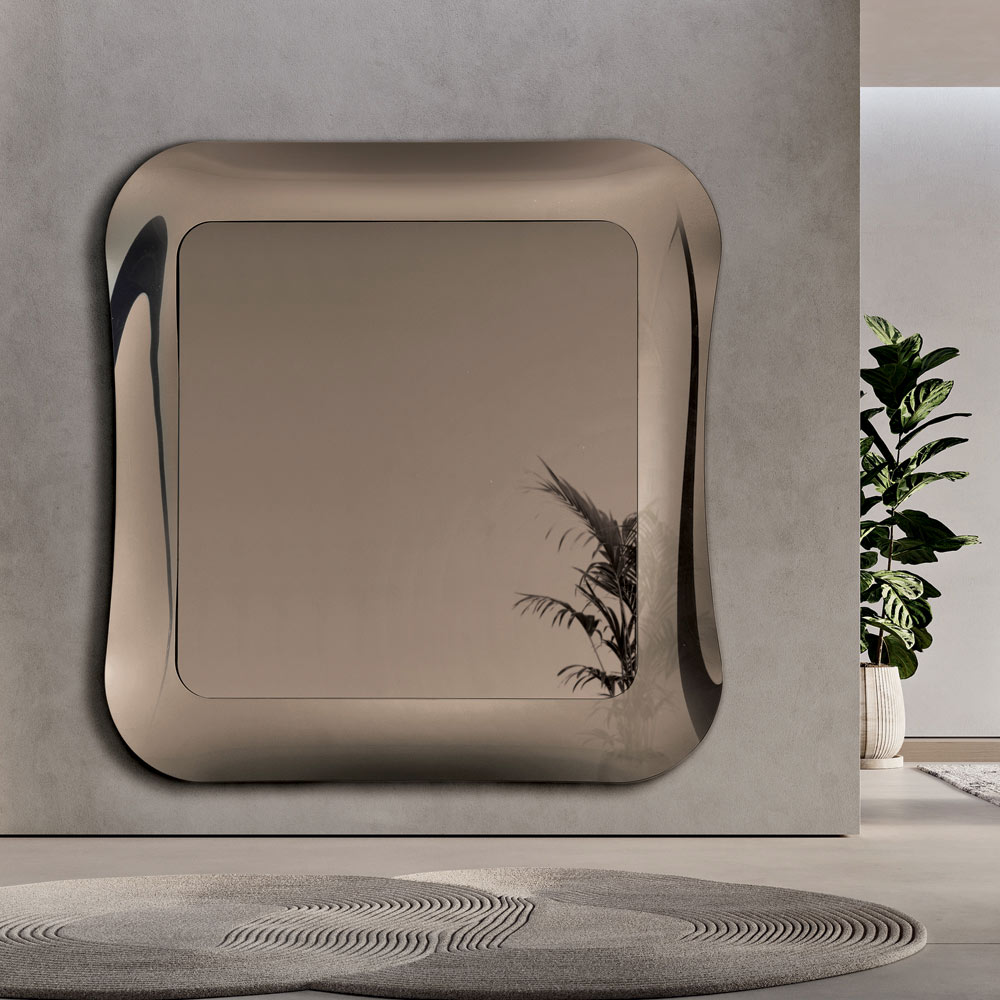 Der zentrale Spiegel , der wie ein leicht schwebendes Element auf dem Rahmen ruht, verleiht der Komposition Tiefe und betont das Gleichgewicht zwischen Spiegelfläche und dekorativer Struktur. Das Ergebnis ist ein raffiniertes Einrichtungsaccessoire, perfekt für moderne und elegante Räume.