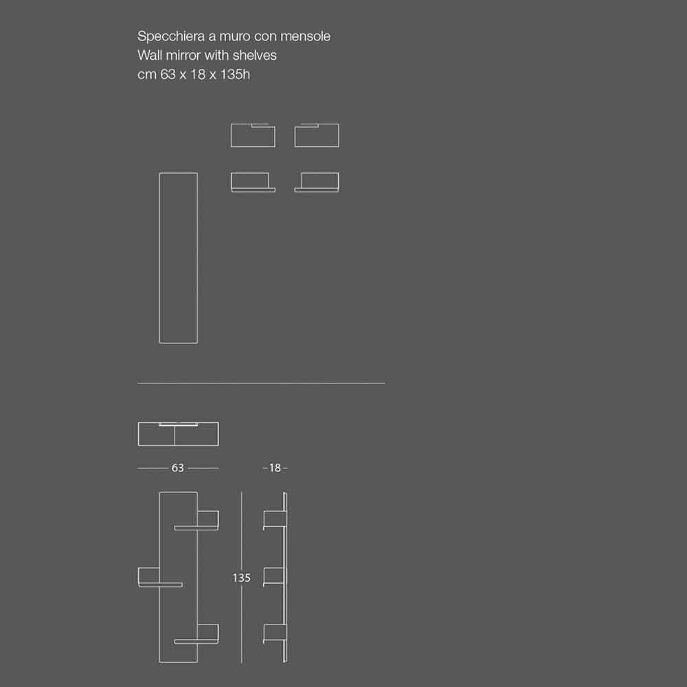 Dekorieren Sie den Eingang oder das Wohnzimmer mit diesem modernen Wandspiegel mit einem sehr originellen und praktischen Design. Die fachmännisch gefalteten Regale aus lackiertem Stahl lassen sich zu individuellen und modularen Kompositionen kombinieren. Die ineinandergreifenden Regale mit einer dünnen und raffinierten Linie befinden sich an den Seiten des Spiegels und können nach rechts oder links positioniert und auch zu einem späteren Zeitpunkt entlang ihrer Achse bewegt werden.