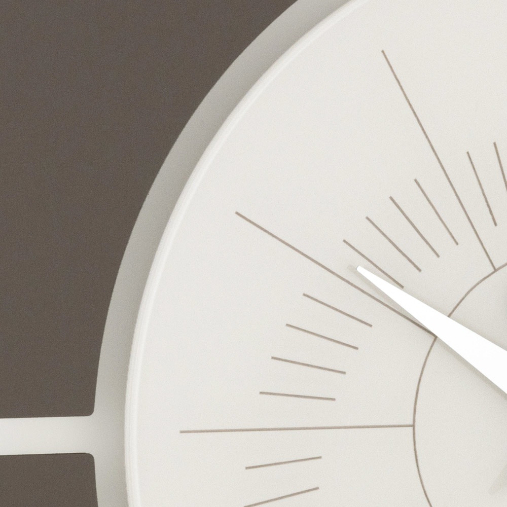 Geometrische Linien, edle Materialien und eine zeitgenössische Farbpalette machen diese Uhr zu einem wahren Einrichtungselement, perfekt für moderne, professionelle Umgebungen oder für diejenigen, die Details lieben, die den Unterschied machen.