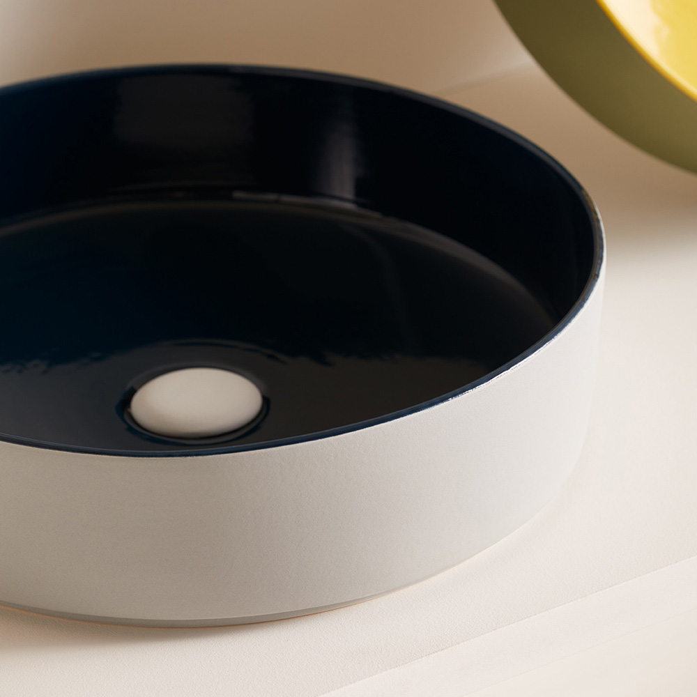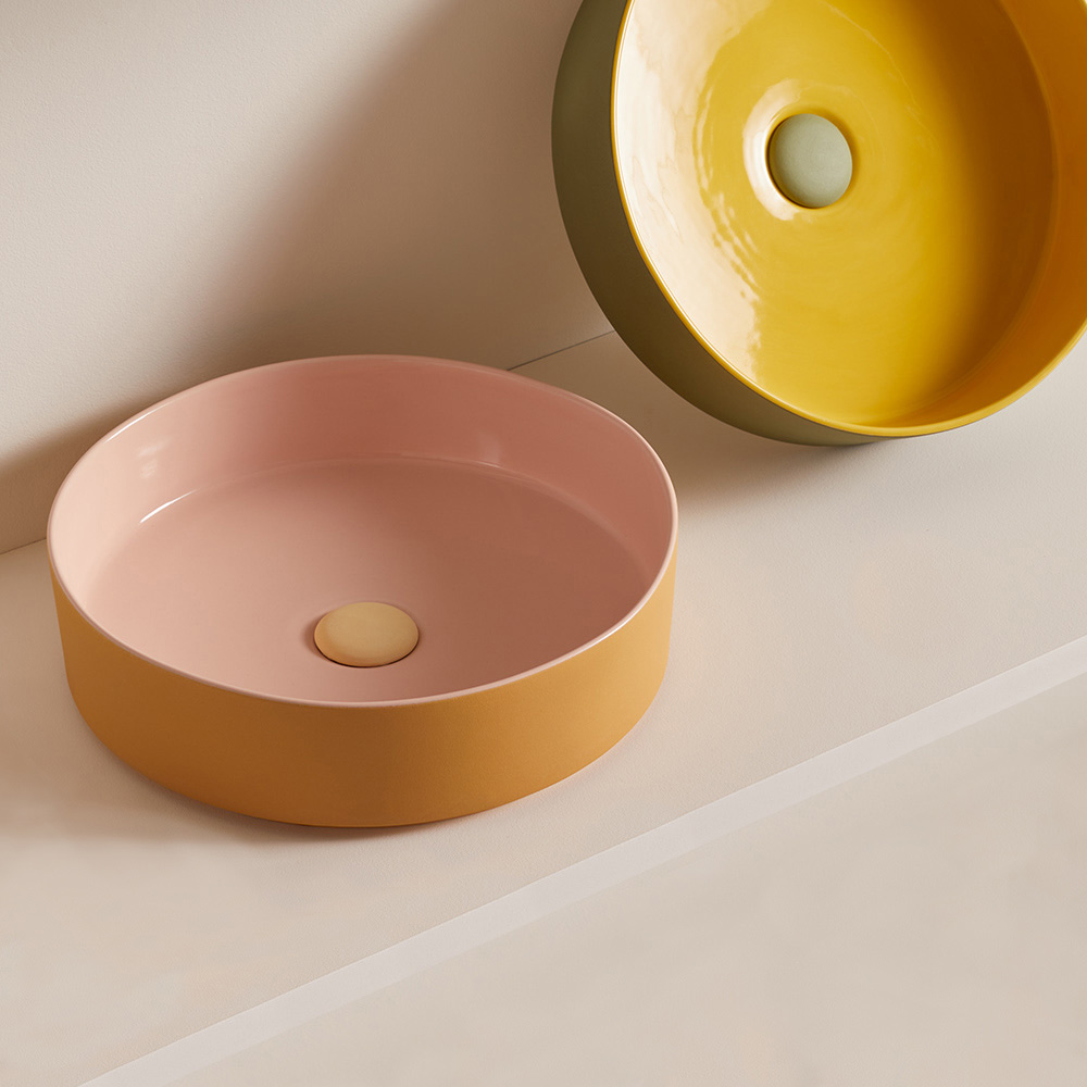 Dieses Waschbecken ist von den Farben der Süßigkeiten inspiriert und spielt mit der Einfachheit der Form und der Originalität der Kombinationen , in Unifarben oder verziert mit kleinen abstrakten oder figurativen Geometrien. Dadurch entsteht ein kaleidoskopisches Spiel zwischen Innen und Außen , das es zum perfekten Möbelstück macht, um die Einrichtung des Badezimmers mit einer lebendigen und innovativen Note zu vervollständigen.