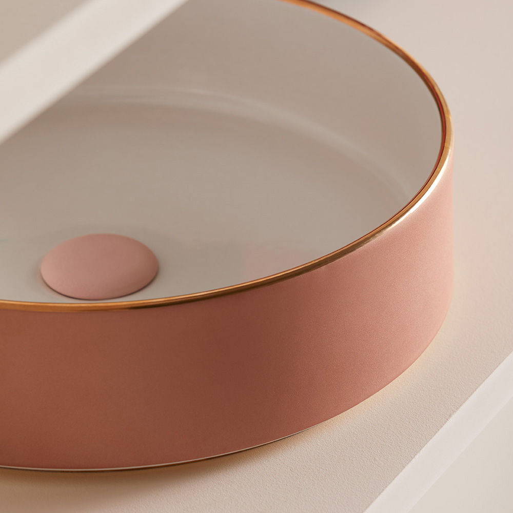 Aufsatzwaschbecken aus handgedrehtem Feinsteinzeug, vollständig in Italien hergestellt.