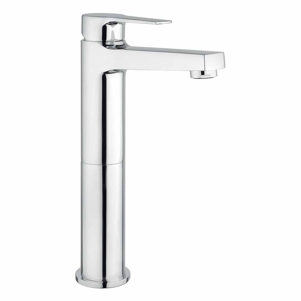Messing Waschbecken Mischer ohne Abfall. Ideal für die originelle und zugleich diskrete Einrichtung und Veredelung eines Badezimmers mit modernem Stil , das einfache, aber unterschiedliche Accessoires mit innovativem Geschmack sucht. Dank seiner ungewöhnlichen Höhe lässt sich dieser Wasserhahn perfekt mit großen Waschbecken kombinieren oder einfach Ihren Badezimmerbereich mit einem Hauch von Persönlichkeit einzigartig machen.