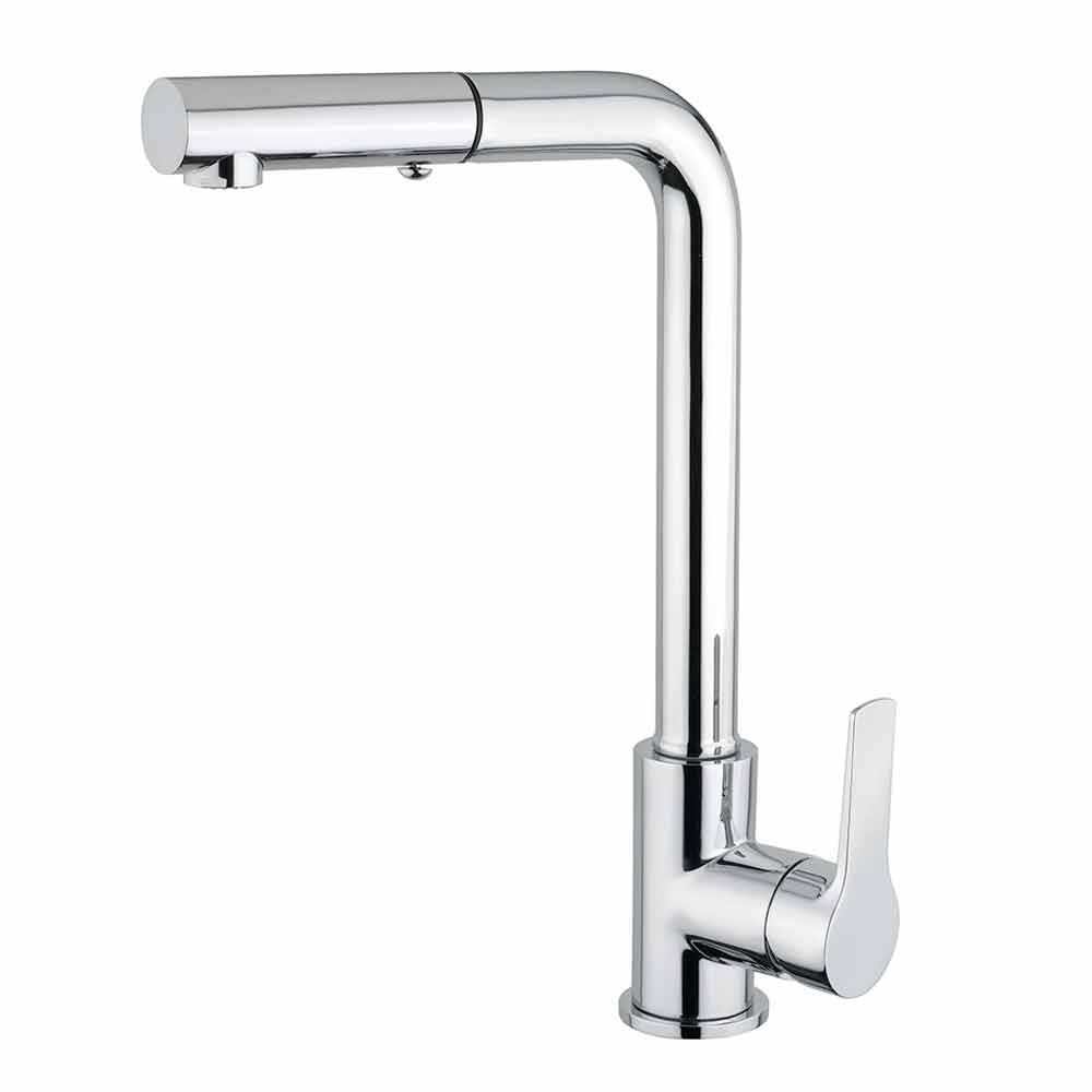 Made in Italy Küchenspüle Mischer aus verchromtem Messing. Dank des verstellbaren Auslaufs und der ausziehbaren 2-Jet-Handbrause bilden Funktionalität und Design das perfekte Produkt für eine Küche mit einem modernen und innovativen Aussehen, ohne dabei eine äußerst einfache und praktische Verwendung zu vernachlässigen.