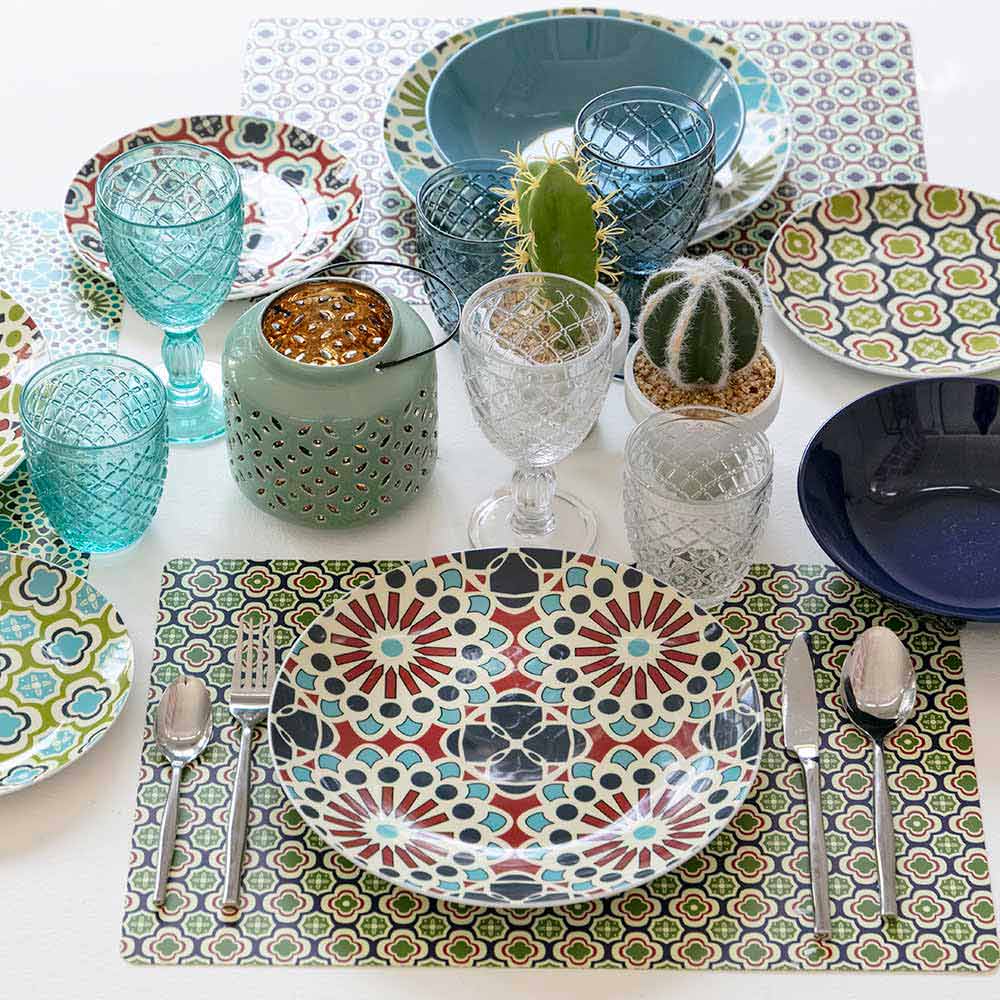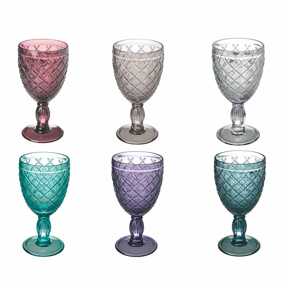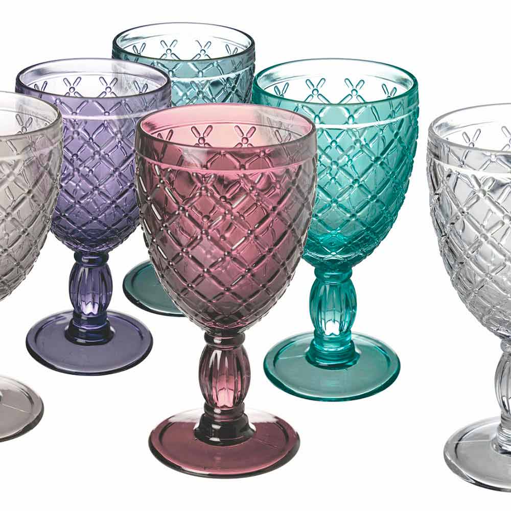 Auf der Höhe eines eleganten Tisches und in der Lage, auf einem informellen Set zu glänzen, beleuchten die Bechergläser jede Mahlzeit dank der kostbaren farbigen Schnitzereien , die wie kleine Diamanten jedem Getränk einen Wert verleihen. Klar mit Wasser, mit Wein umhüllt und sehr süß mit Likör, begleiten sie jedes Getränk mit einem Schuss Lebendigkeit.