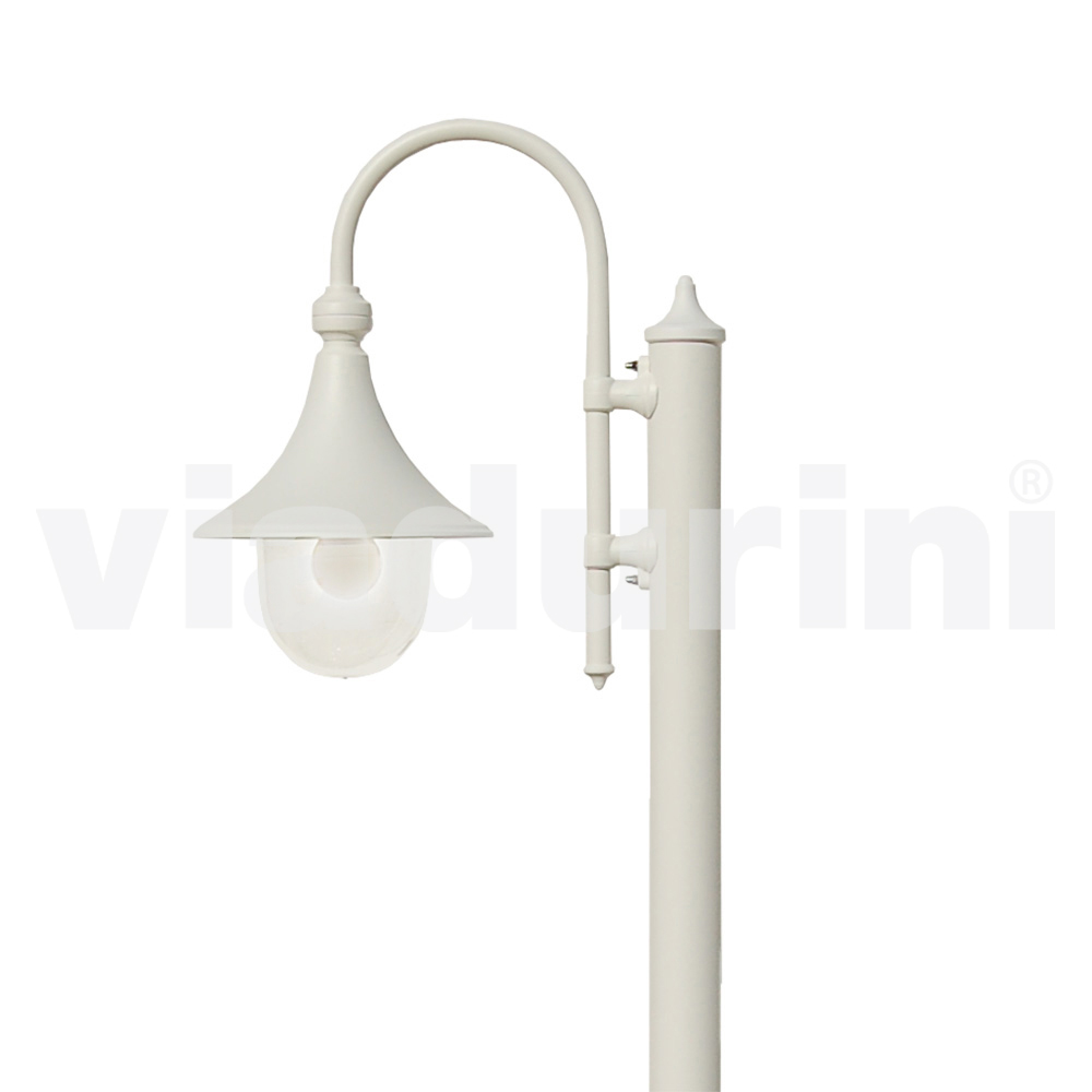 Straßenlaterne für den Außenbereich aus weißem Aluminium, hergestellt in Italien, Anusca Anusca ist eine einflammige Gartenlampe, die in Italien aus hochwertigen Materialien handgefertigt wird: Struktur aus Aluminiumdruckguss und Diffusor aus Polycarbonat, erhältlich in den folgenden Varianten: transparent (garantiert eine optimale und stets homogene Lichtstreuung); opal und rauchig.