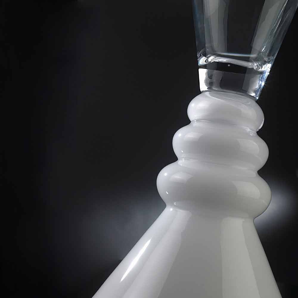 Ornamentale Vase aus transparentem und weißem Glas, hergestellt in Italien.
