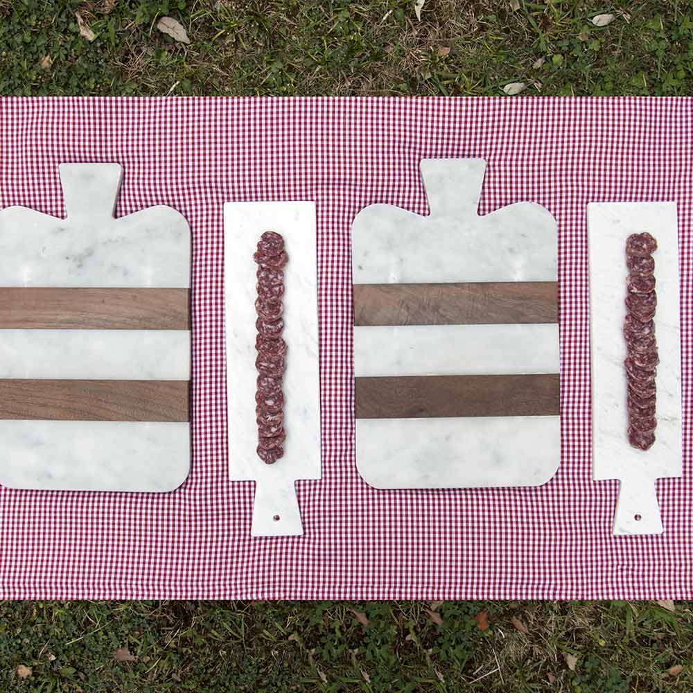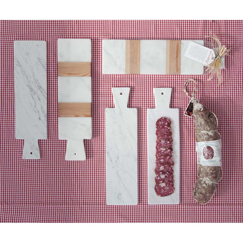 Rechteckiges Schneidebrett in 2 Größen erhältlich, gekennzeichnet durch hochwertigen weißen Carrara-Marmorverwendet für seine Realisierung und von den Holzeinsätzen . Es enthält auch ein praktisches Loch am Griff zum Aufhängen. Es ist ein einzigartigesStück, da jeder Marmorblock in Adern und Schattierungen unterschiedlich ist. Geboren aus den Händen italienischer Handwerker, die sich seit Generationen auf die Marmorverarbeitung spezialisiert haben. Aus diesem Grund ist jede Variation in Form und Farbe als Garantie für die Handwerkskunst anzusehen. Der für die Realisierung des Produkts verwendete Marmor stammt aus dem Steinbruch Poggio Silvestre, aus dem seit dem letzten Jahrhundert klassifizierter weißer Marmor erster Qualität stammt .