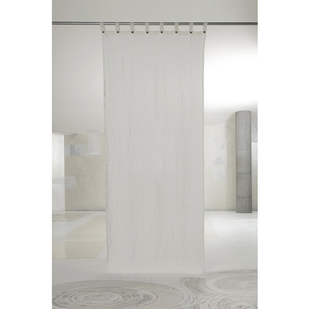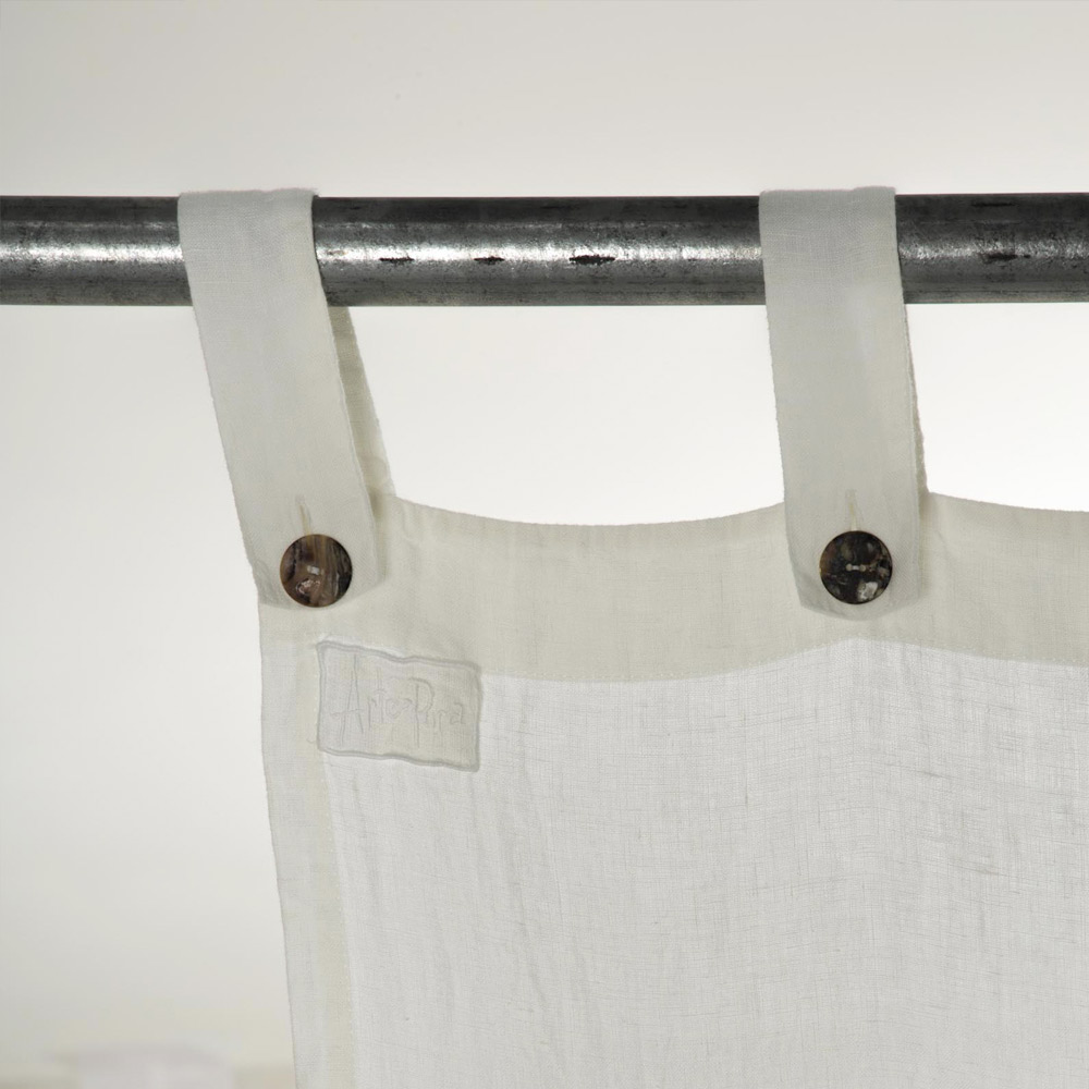 Weißer schwerer Leinenvorhang mit Perlmuttknopfverschluss, handgefertigte Qualität made in Italy.