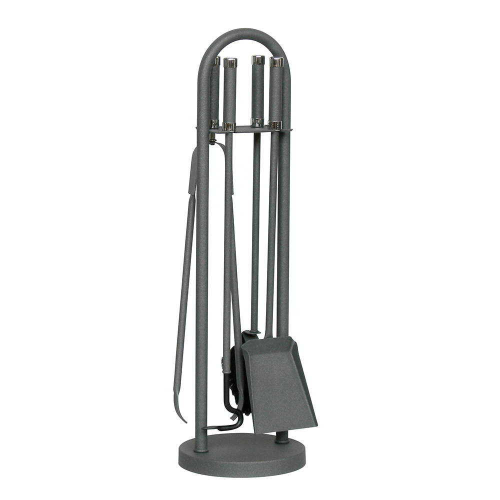Das Set enthält vier unverzichtbare Werkzeuge für die Pflege Ihres Kamins , jeweils mit langen Griffen für sicheres Feuermanagement. Die Werkzeuge sind elegant an Ständern aufgehängt, was das Set nicht nur praktisch, sondern auch zu einem integralen Bestandteil Ihrer Einrichtung macht.